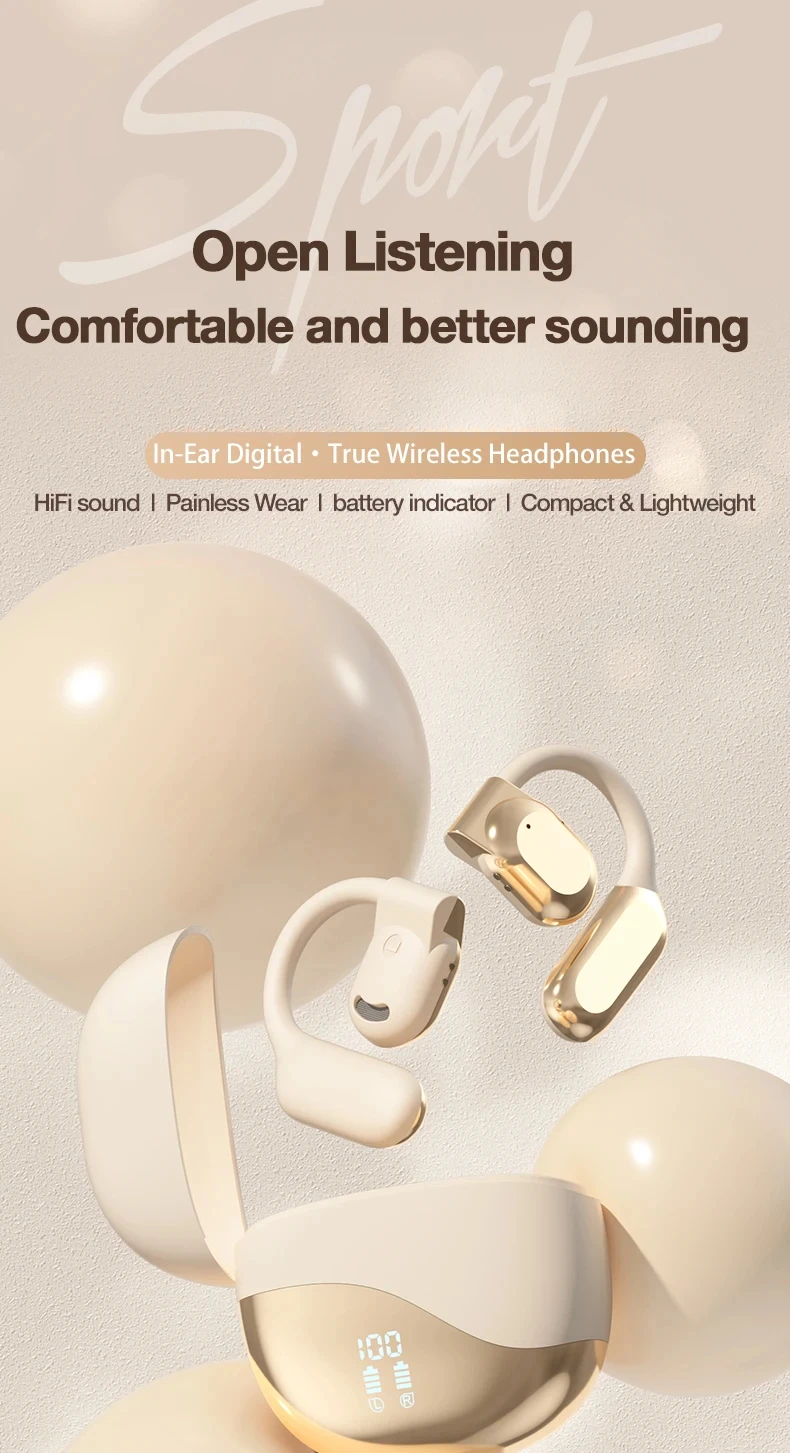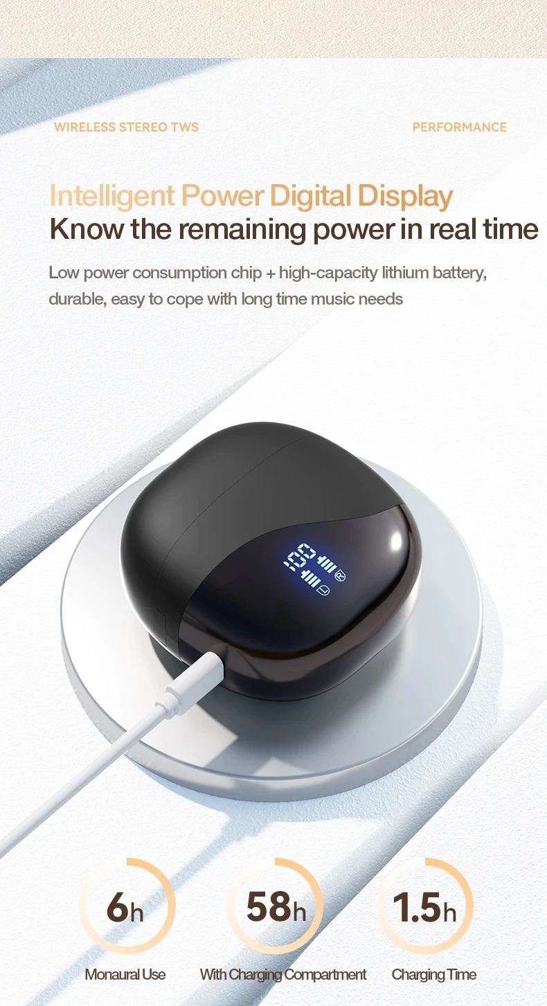 2024 New Arrival M62 OWS BT5.3 Hot Selling Low Latency Wireless Waterproof Bt Earphone With Power Display Gaming Earbuds