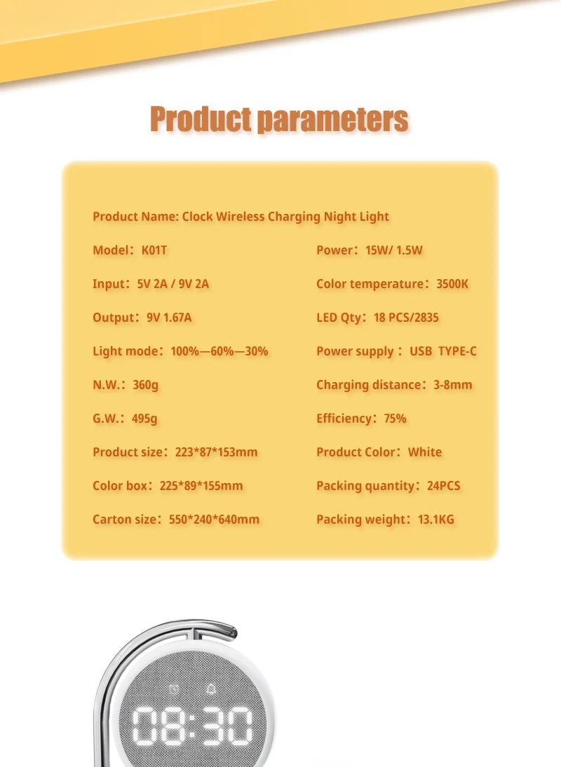 2024 Wholesale Chargers New Phone Charger Adapter Multifunction Alarm Clock 15W Quick Charging Led Night Wireless Charger Type-C White Tidesmit