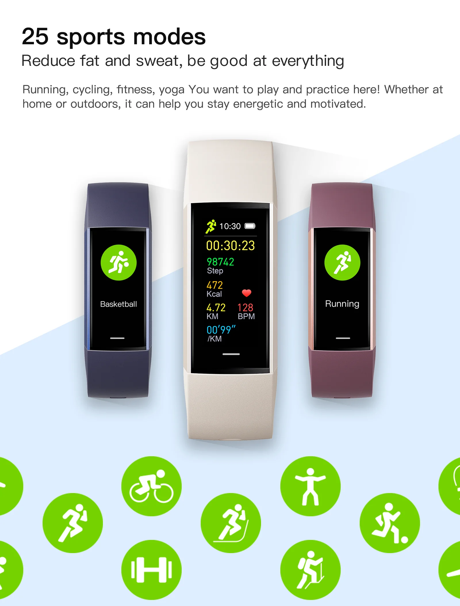 body temperature test / heart rate test / blood pressure test / blood oxygen test / sleep test /pedometer/Calorie burn/Distance/Sedentary reminder/Call,SMS,APP remind