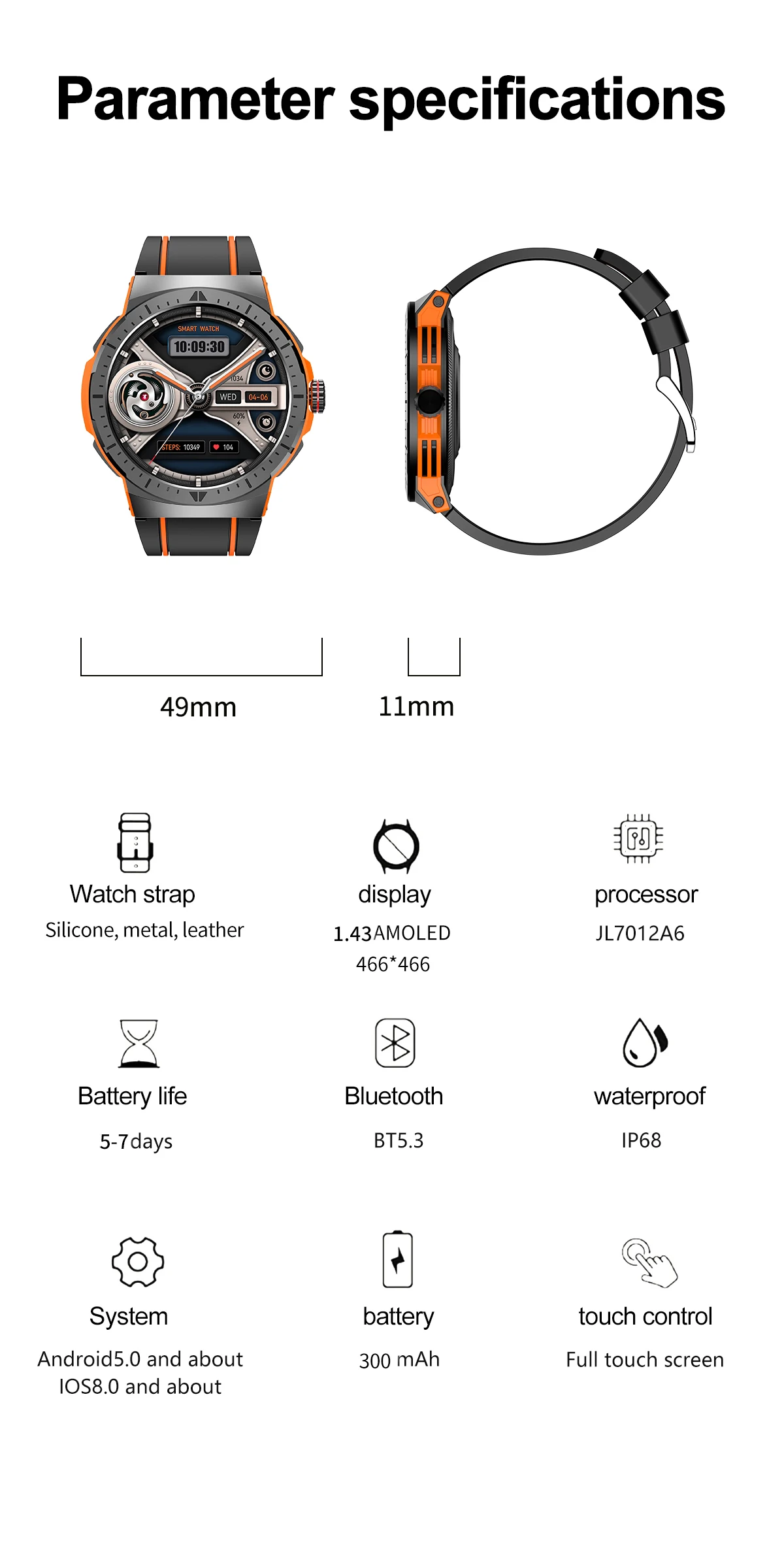 2025 Best Sport Smart Watch for Men Women AMOLED Screen GPS Navigation Activity Tracker Health Monitoring Call Answering