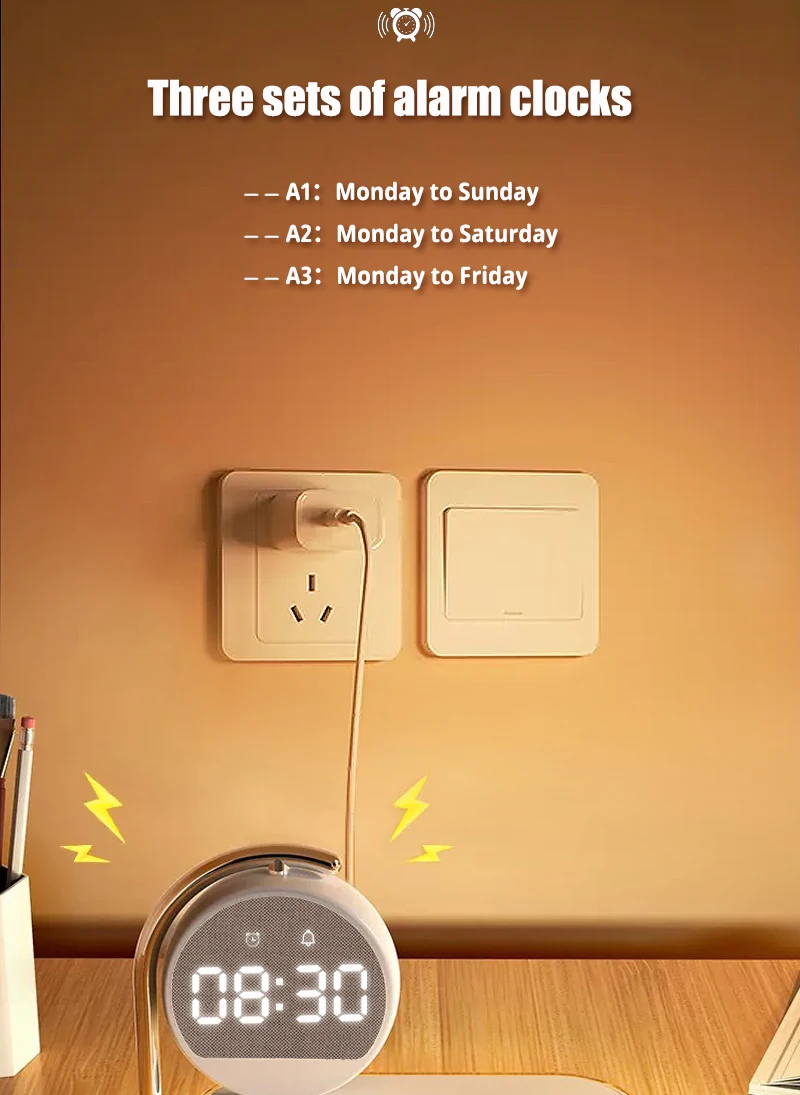 2025 Trending Multifunction 3 in 1 Type-C Alarm Clock Phone Charging Wireless Charger with Adjustable Night Light