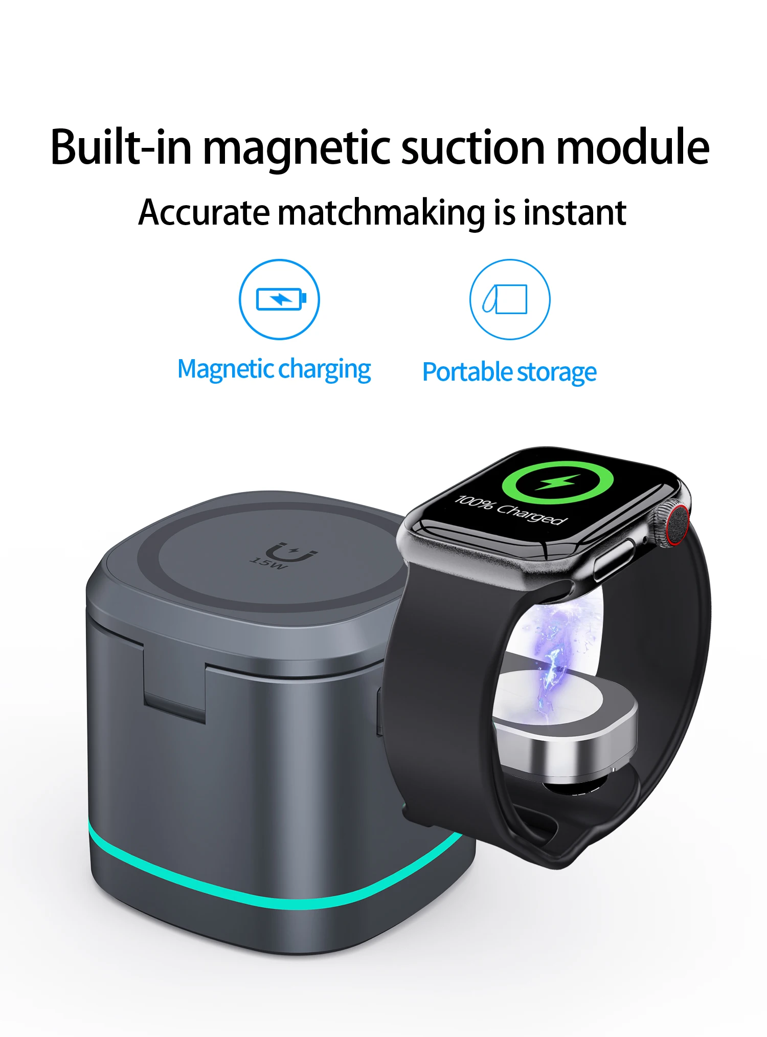 Power bank charger-3 in 1 Cube Foldable Wireless Charger 15W Fast Charging Stand Desktop Charging Station for Iphone 15 Pro Max Magnetic Portable