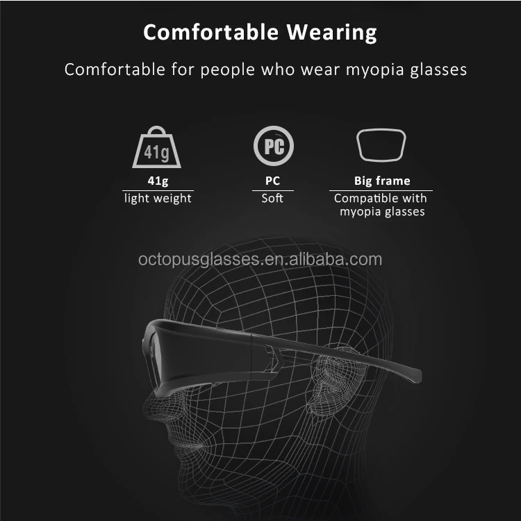 【Lightweight & Comfortable】 active shutter DLP-Link 3d glasses is lightweight and portable to take, also can be worn very comfortably in front of regular glasses, comfortable to wear for a long time ; The DLP 3d glasses comes with a micro usb cable for charging, a cleaning cloth, a cloth pouch for storage, a zippered glasses case and the manual.