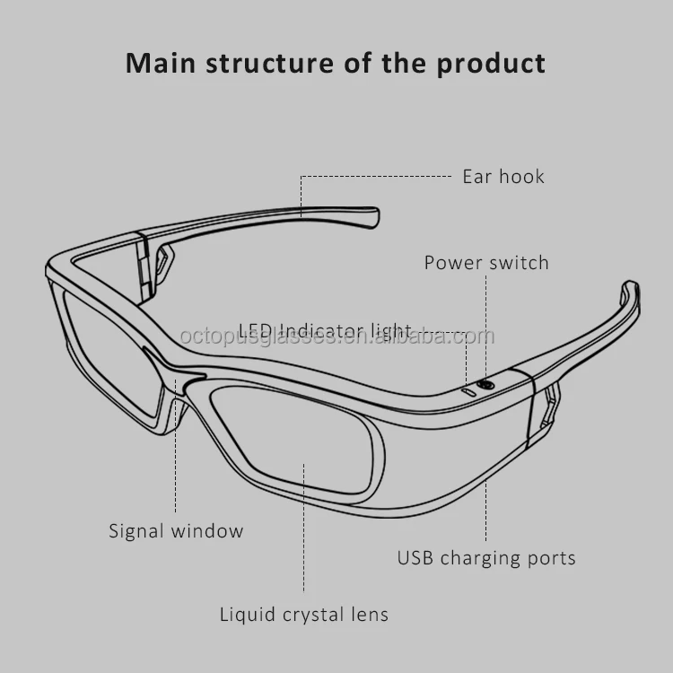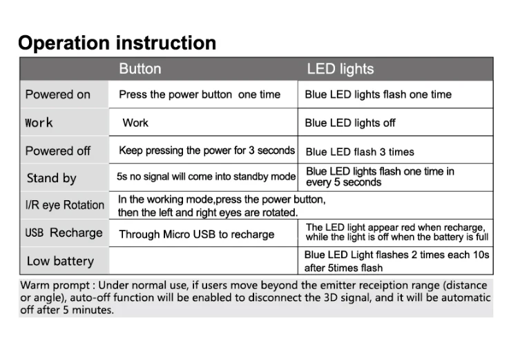 【Long Lasting Battery】 The active 3d dlp glasses comes with built-in high capacity rechargeable battery, continuous working 45 hours after fully charged with USB , standby time 180 days; Auto 5 seconds Stand by and 5 minutes Shut Off, save energy and stable.