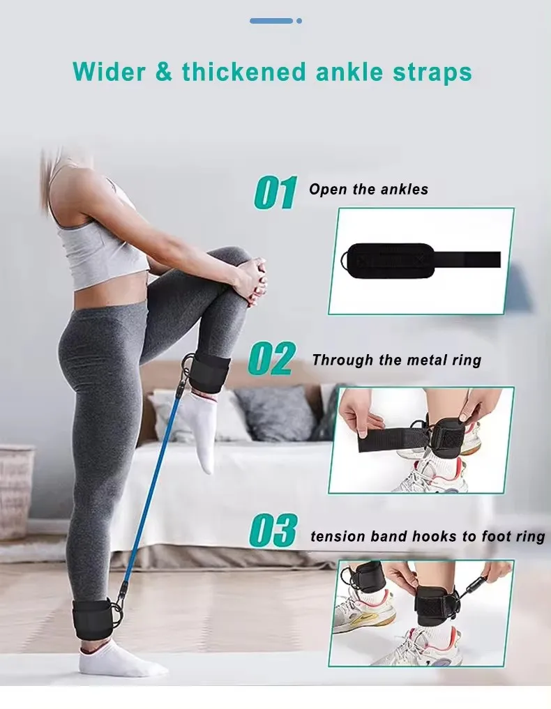 6 Piece Ankle Resistance Bands With Cuffs for Working Out Glute Leg Exercise Booty Workout Equipment