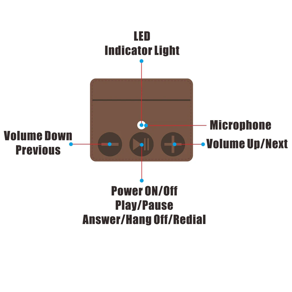 14) Functions: Next Song/Previous Song, Volume Up/Volume Down, Play/Pause, Answer/Hang Off, Redial.