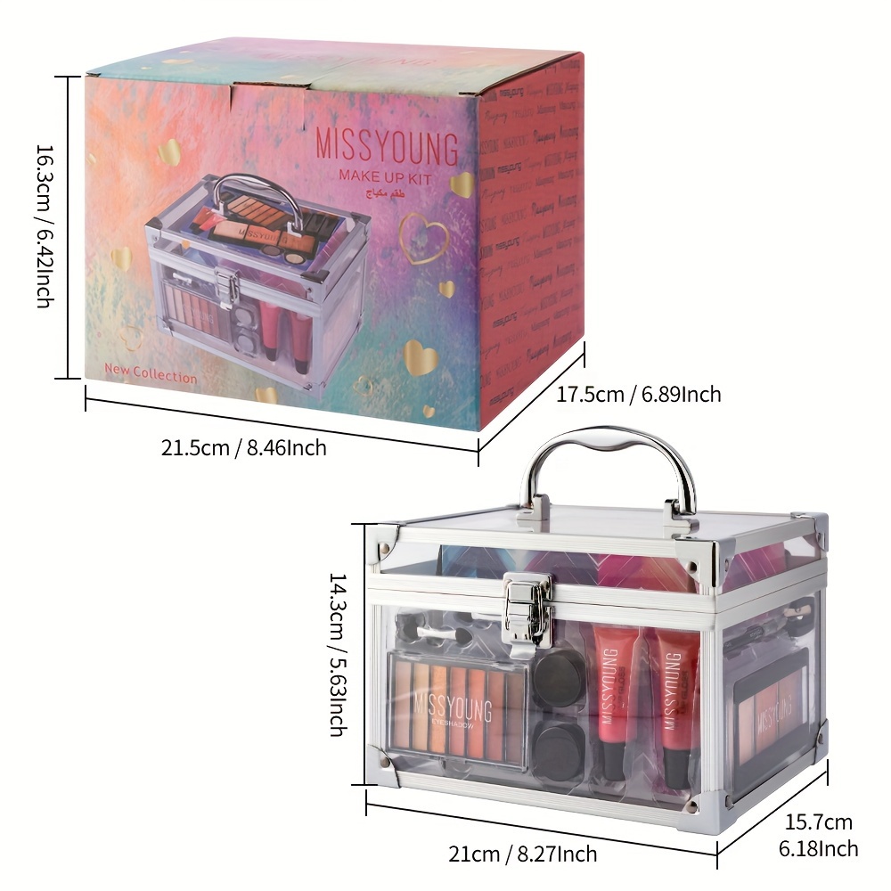 All in One Full Makeup Kit Aluminum Makeup Storage Case Train Case with Eyeshadow Palette Eye Pencil Contour Powder Lipsticks Lipgloss Eyeshadow Cream Applicator Sharpener Mirror, Makeup Gift Set for Women Girls & Teens,Easy