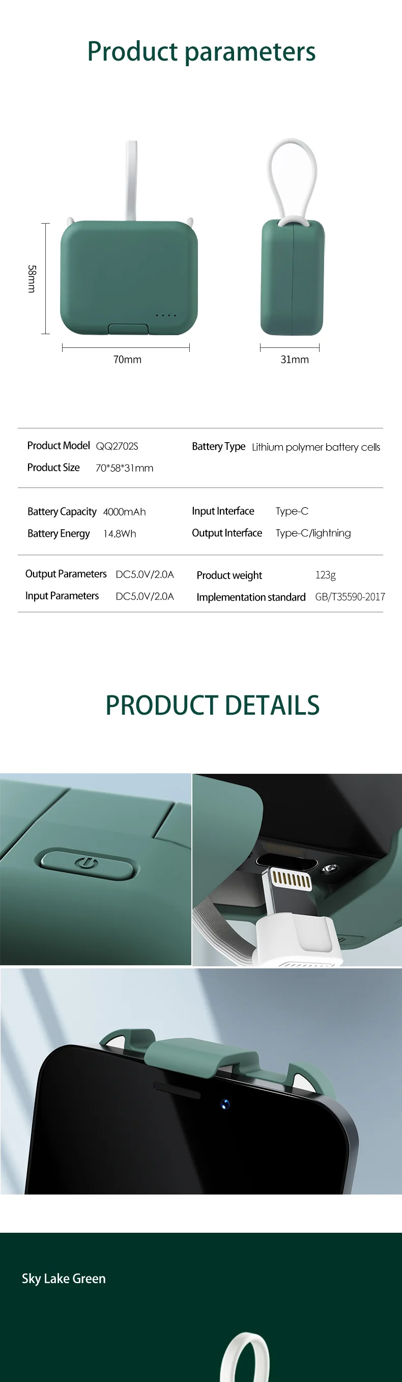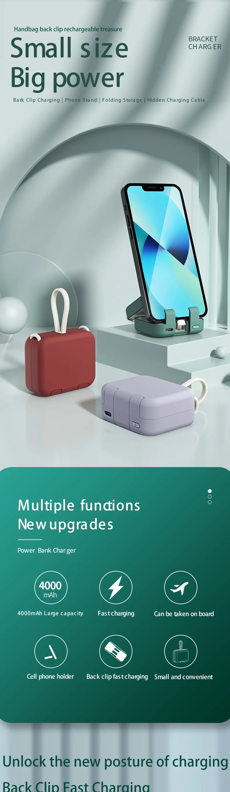 Power bank charger-Battery Charging Case Handbag Clip Power Bank Back Clip Portable Mini Powerbank 4000mah