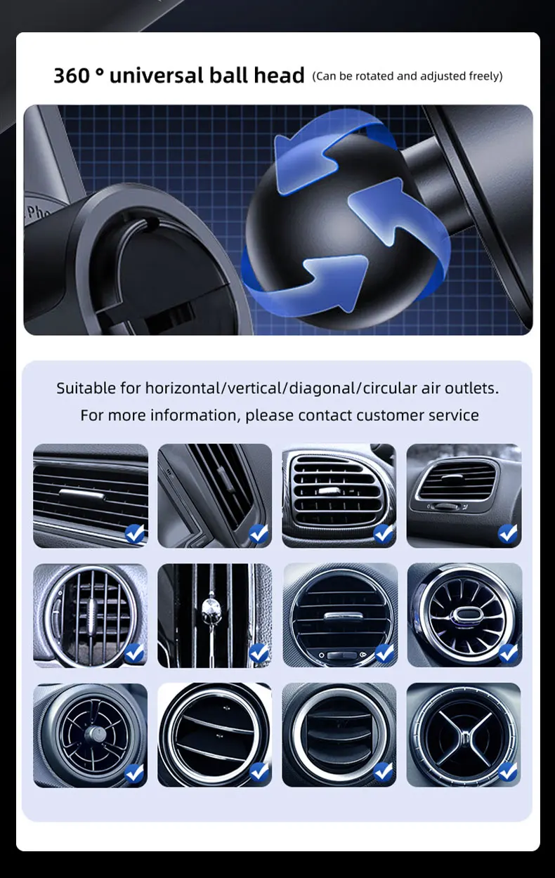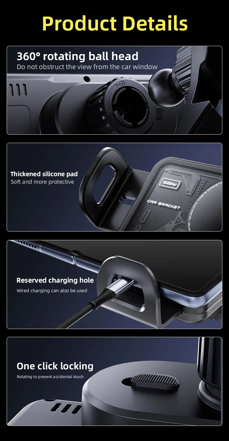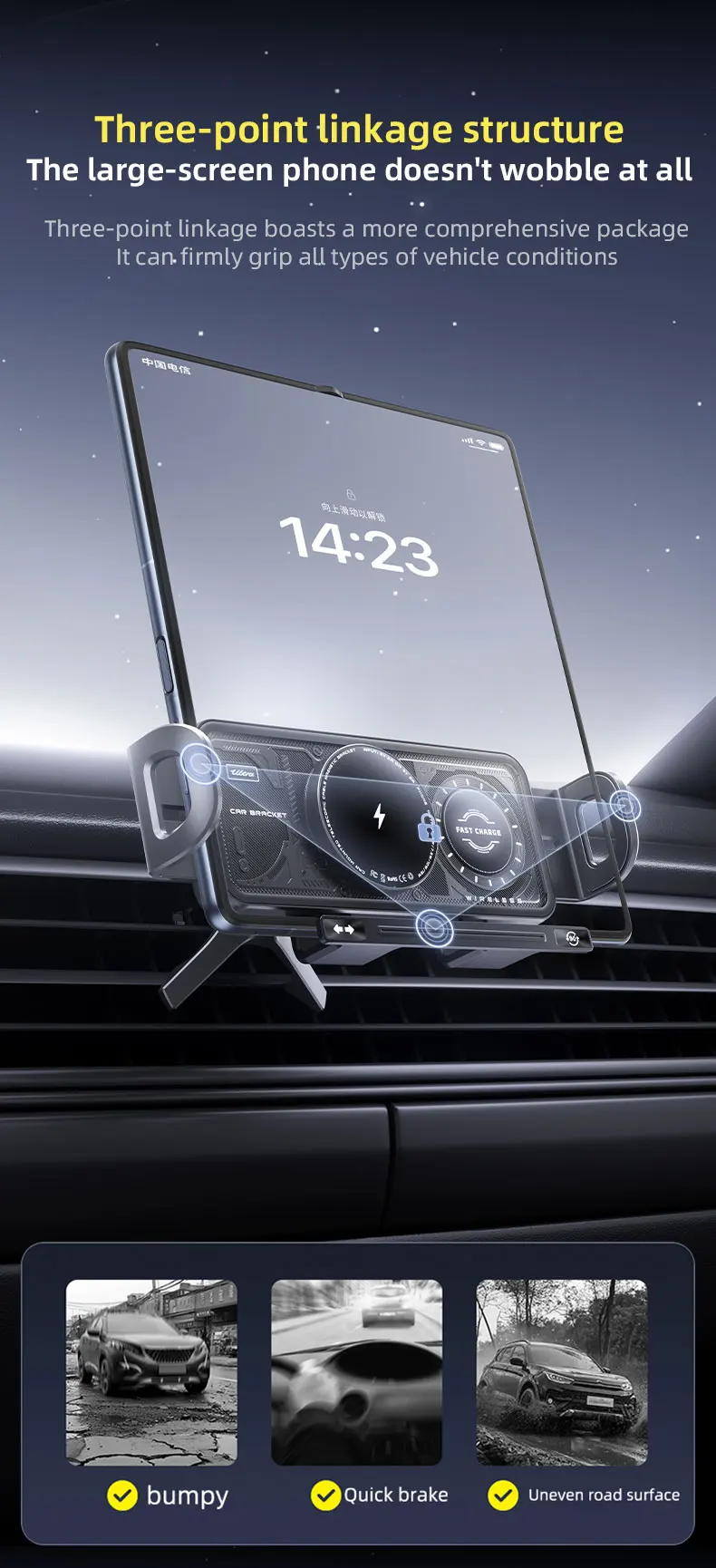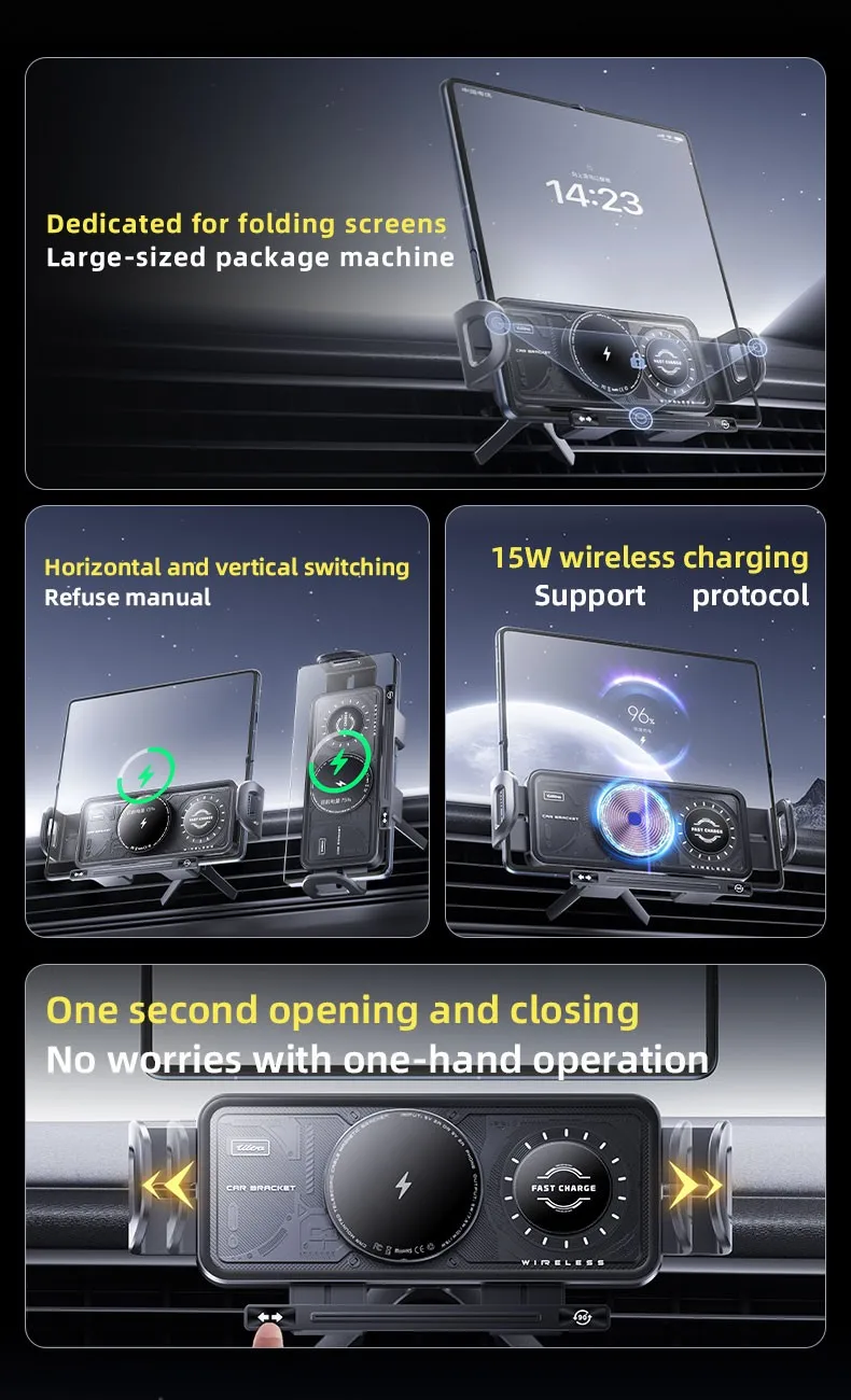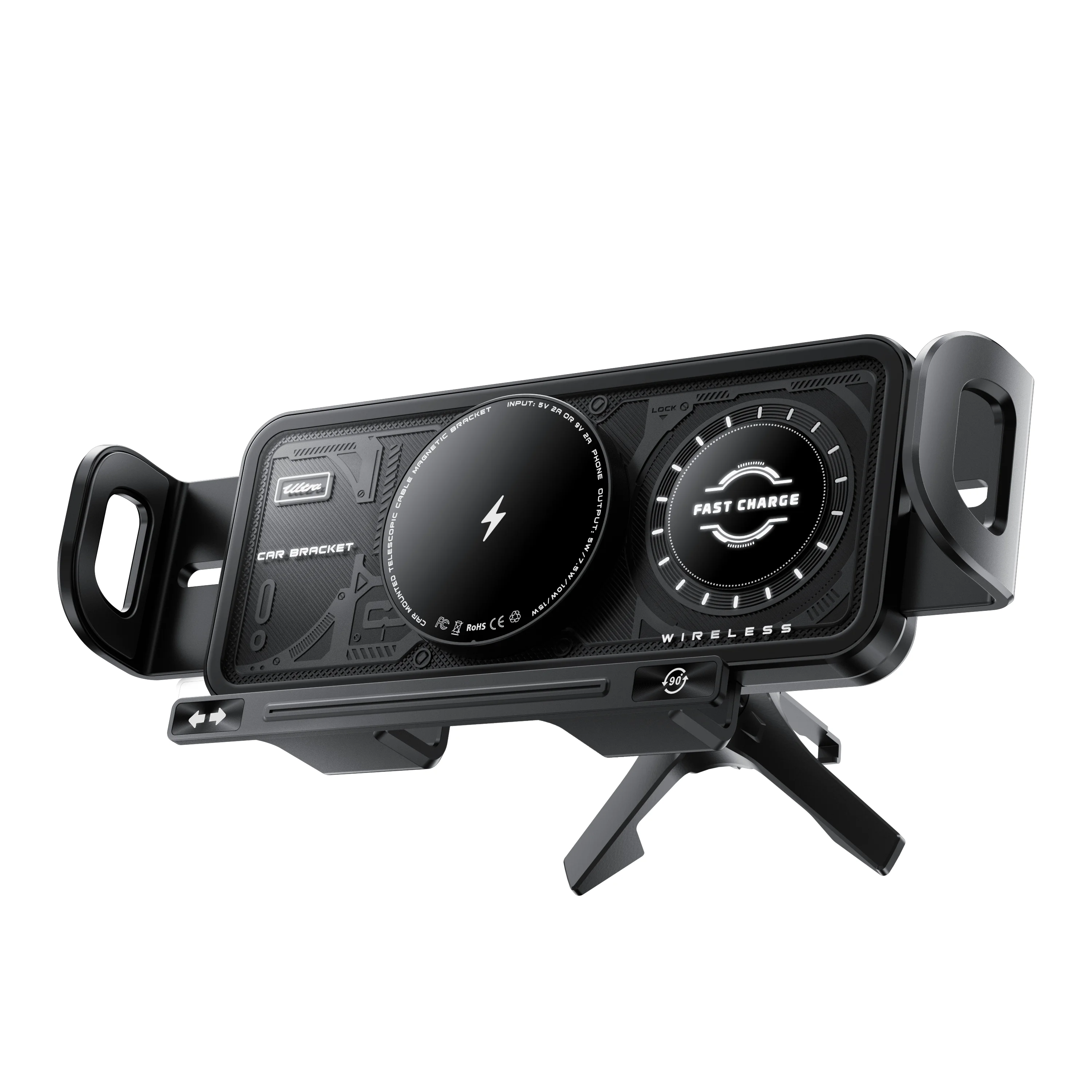 Best 2025 Multifunctional 15W Universal Electric 90° Flexible Rotation Car Wireless Charger Large Screen Bracket Holder for Gift