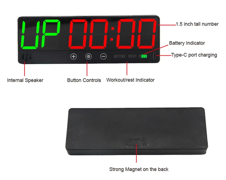 CHEETIE CP50A Small Size Rechargeable Workout Clock Count Down/Up Gym Timer Clock for Home Gym Battery