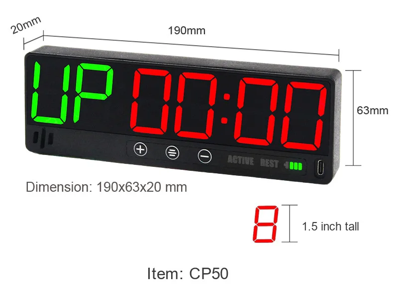 CHEETIE CP50A Small Size Rechargeable Workout Clock Count Down/Up Gym Timer Clock for Home Gym Battery Green red Tidesmit
