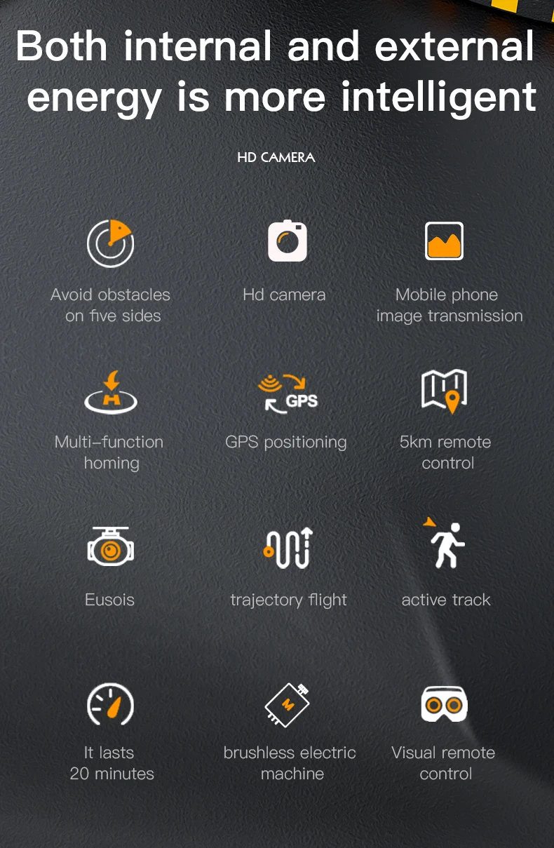 Fixed height function, optical flow positioning, ultra-long time flight, six-pass band gyroscope; One-key take-off and one-key landing, 360-degree roll, rise and fall, forward and backward, left and right side fly, turn, headless mode (with camera can add functions: gesture photography, video, music, big head paste, voice operation, emergency stop, trajectory flight, gravity sensing)