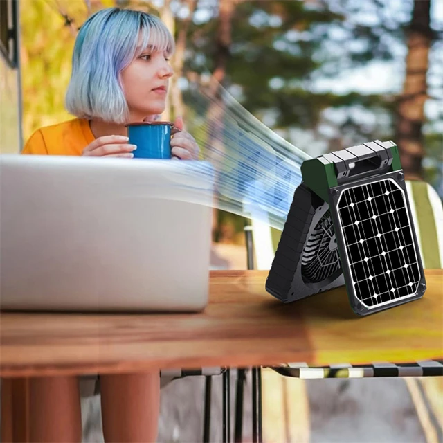 Power bank charger-Cooler Solar Dynamo Portable 5200mah Solar Standing Fan Battery Operated Phone Charger Camping Emergency Power Bank Camping Fan