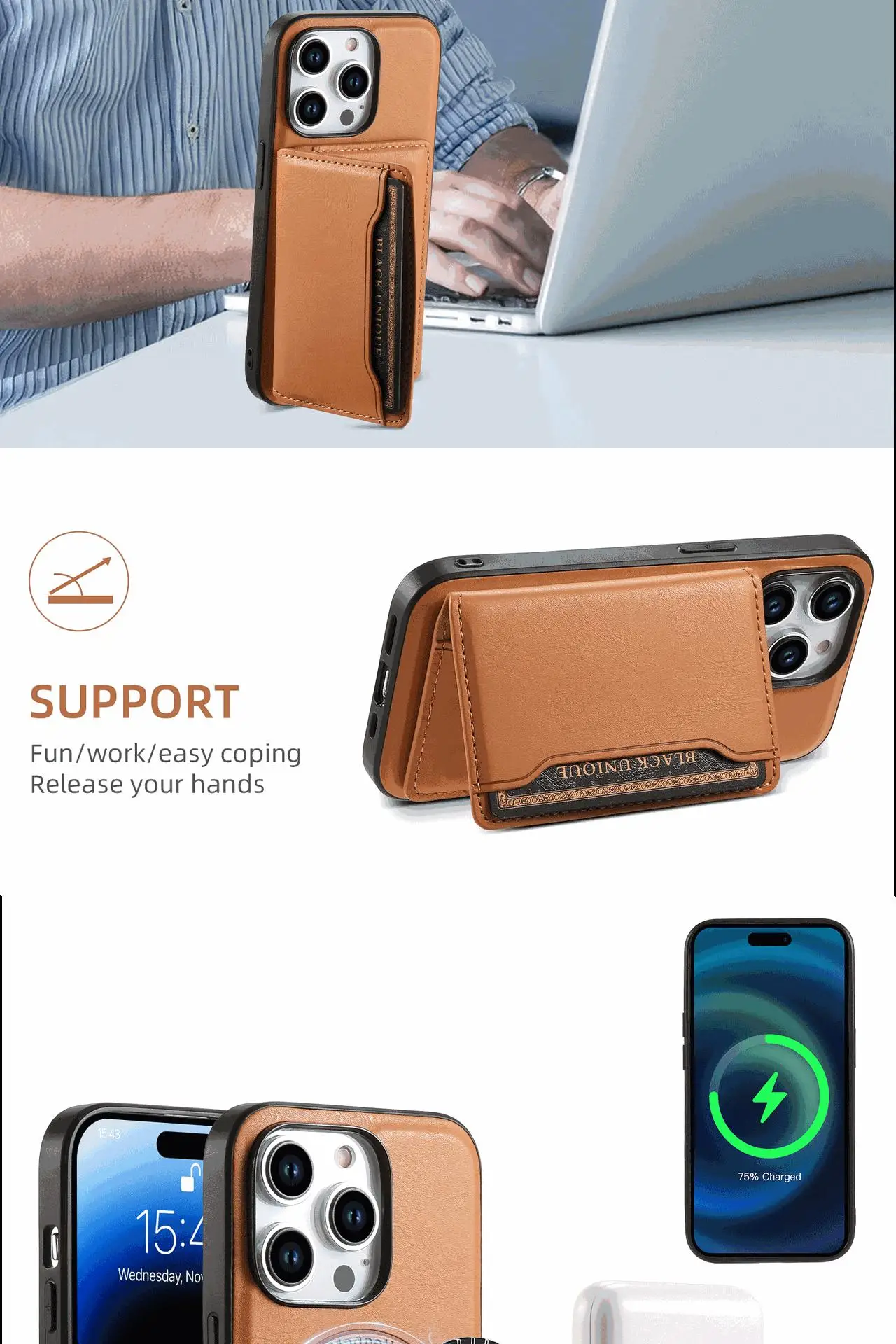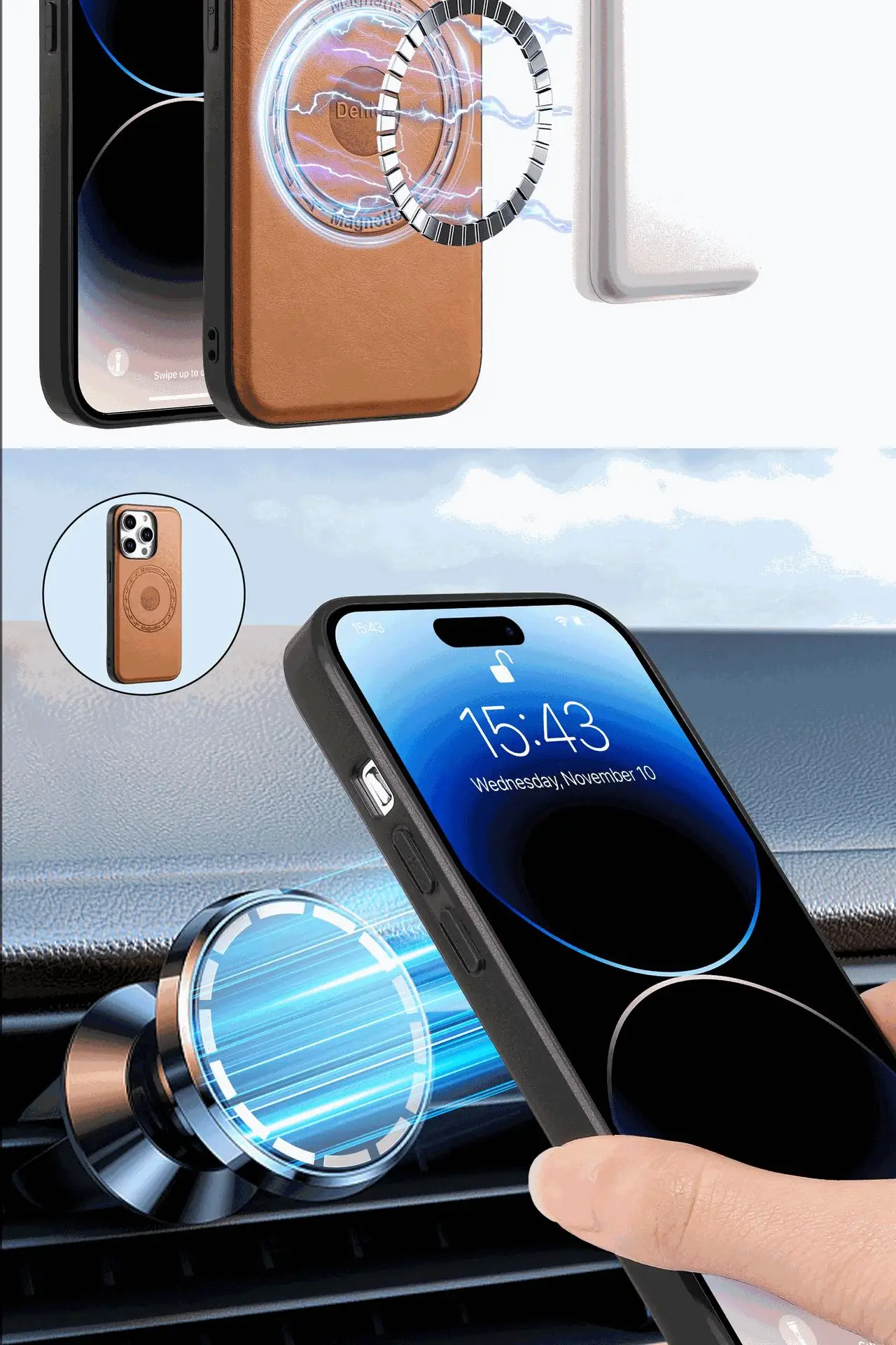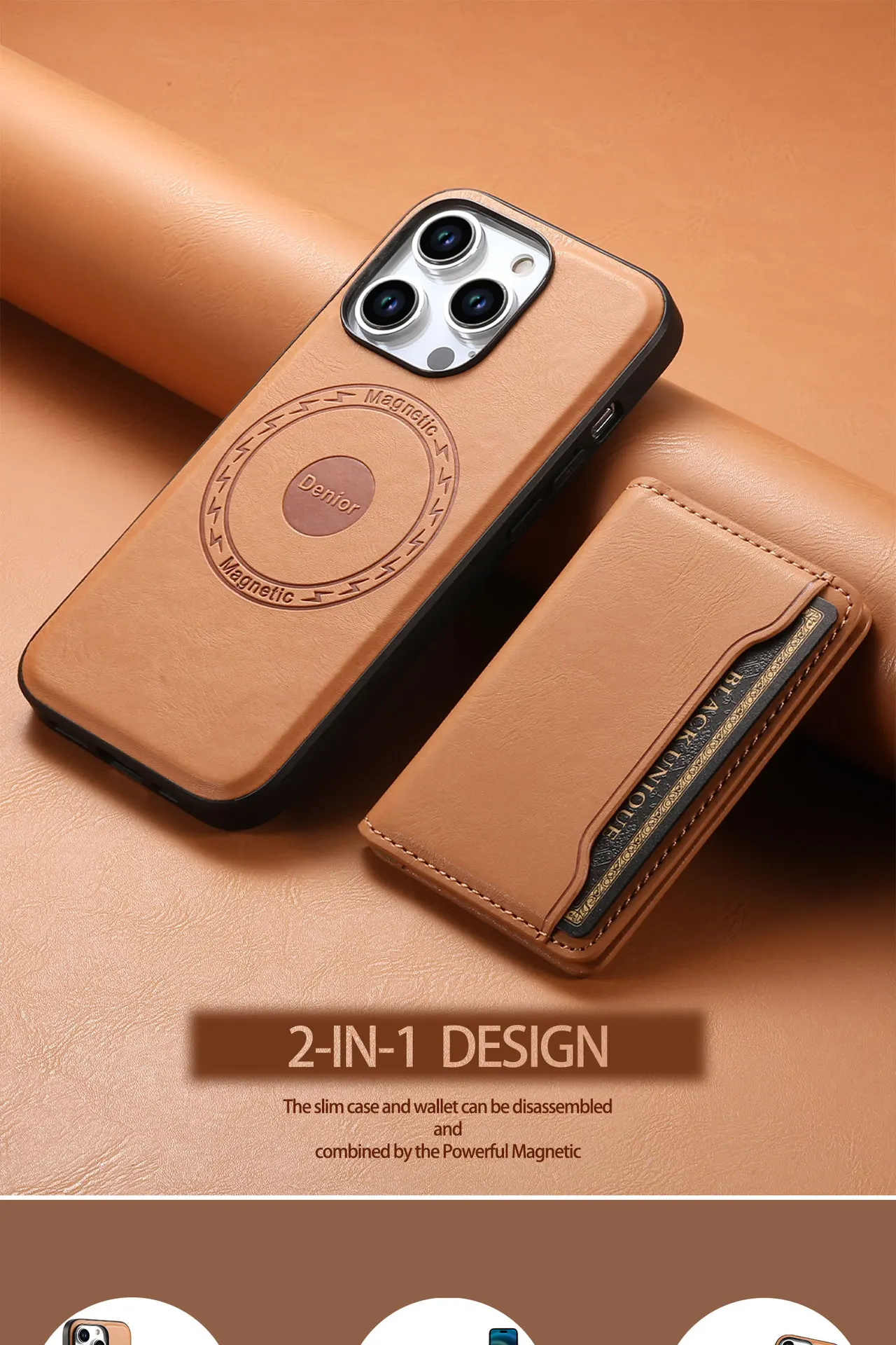 Denior | PU Leather Magnetic Attraction Phone Case for iPhone 16/15/14/13/12 Series & Card Bag(3 Card Slots)