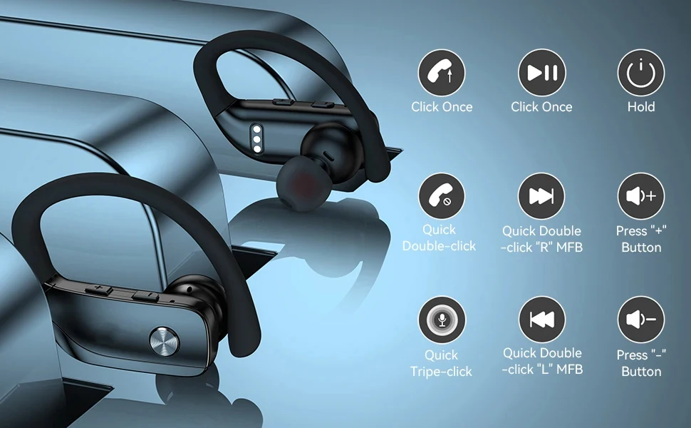 Earhooks Gaming Headphones T16 Sport Earphones Hifi Stereo Sound Wireless Earbuds Over-Ear Headset Built-in Mic for Phone