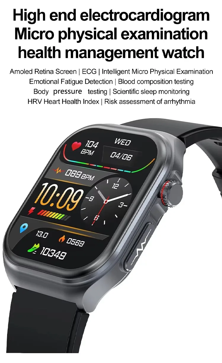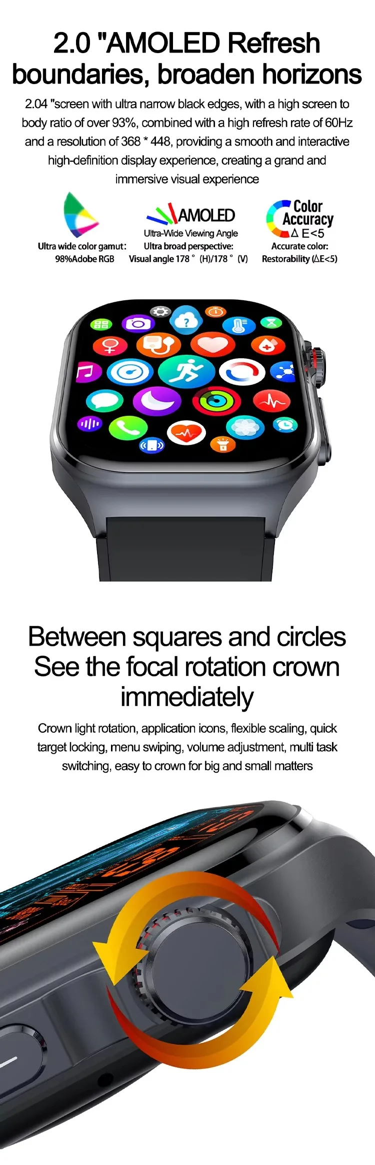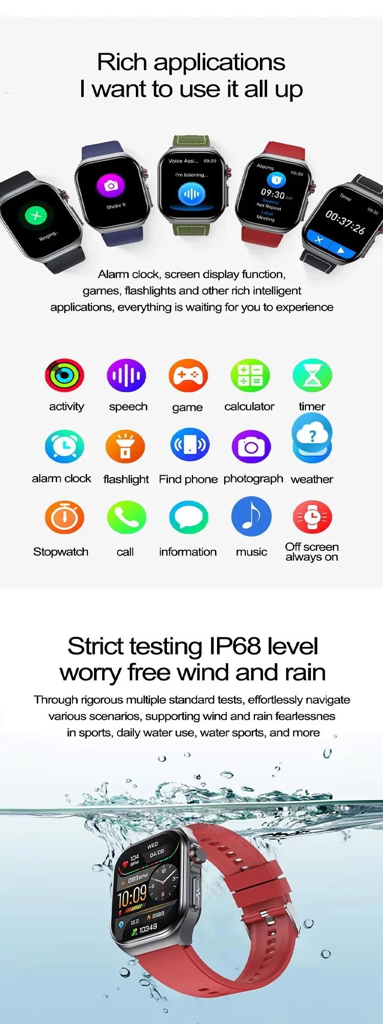 ET585 Men's 2.04 Inch AMOLED Square Screen Touch Fitness Smart Watch IP68 Water Resistant Rubber BT Call Sports Fitness Tracker