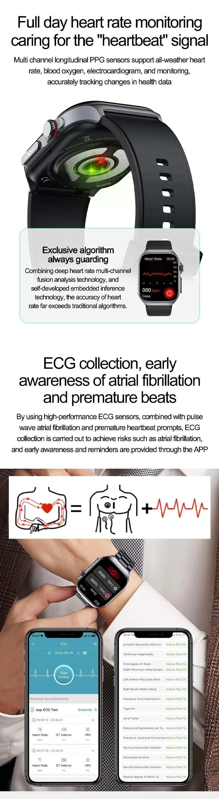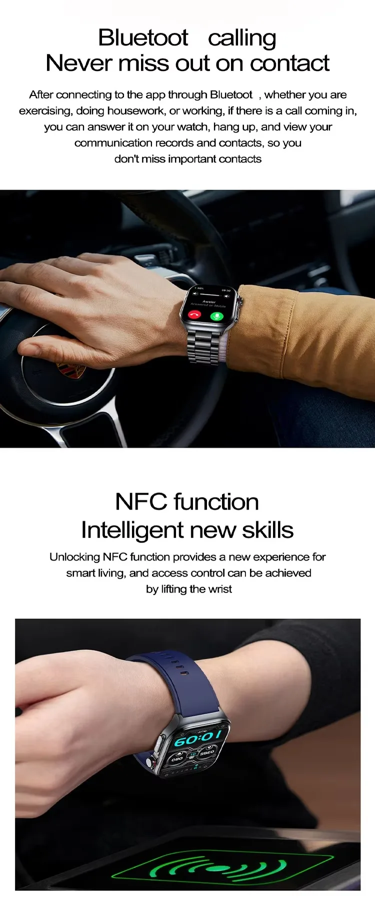 ET585 Men's 2.04 Inch AMOLED Square Screen Touch Fitness Smart Watch IP68 Water Resistant Rubber BT Call Sports Fitness Tracker - Tidesmit