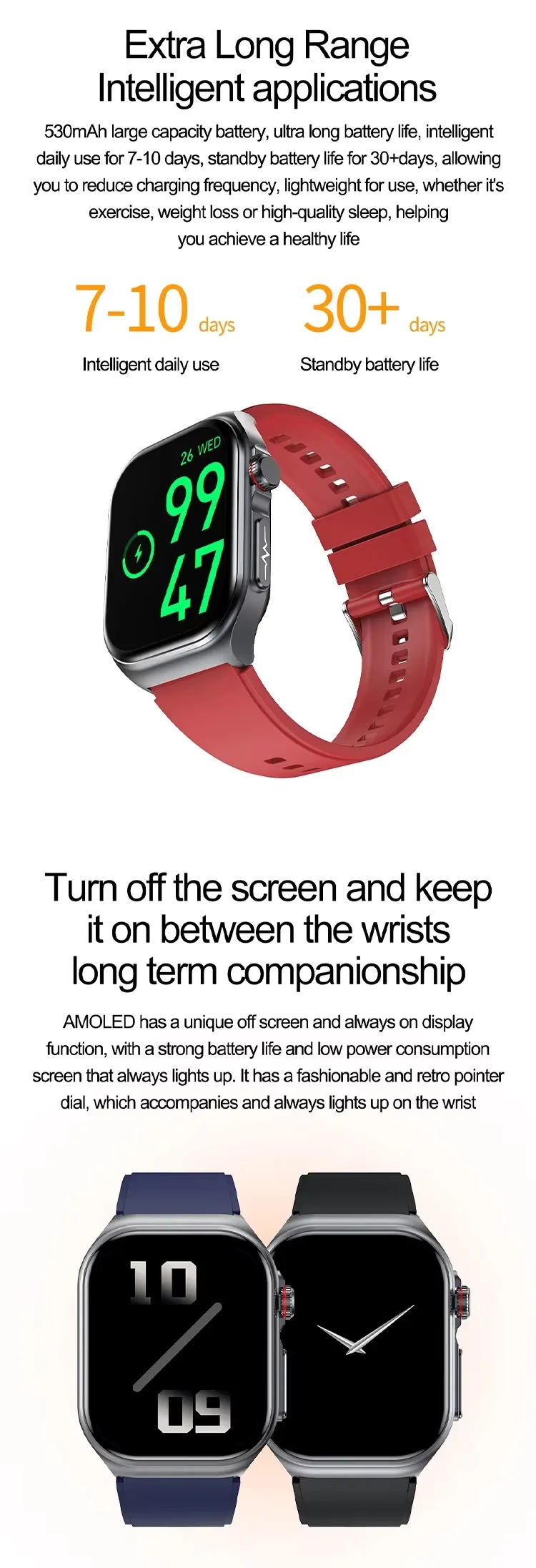 Men's ET585 Smart Watch AMOLED Display Blue tooth Call Sports Fitness GPS Waterproof Dual Touch iOS Android Compatible Square