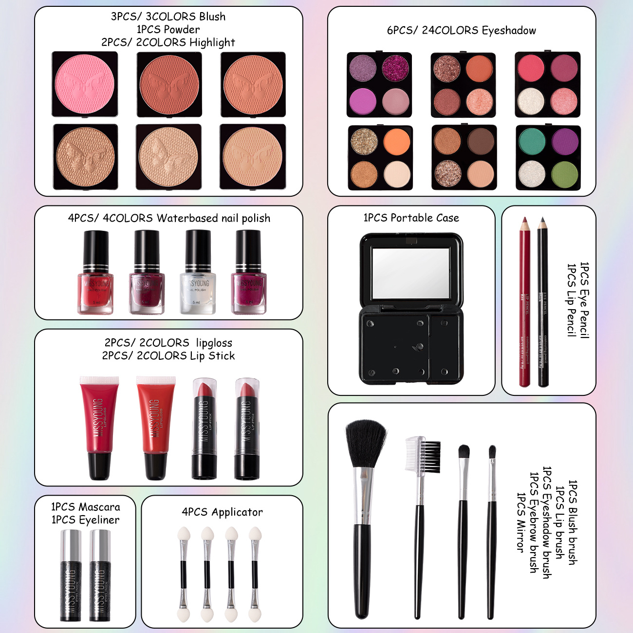 Fashion Streamer Silvery Professional Travel Case: Includes eyeshadow and blush, lipstick, mascara, eyeliner, foundation, brush, etc. -Instant freshness from gym to office, easy and stylish travel, gift for all girls, Gym Es