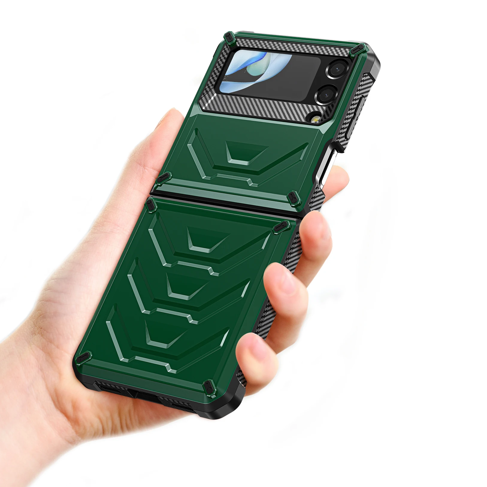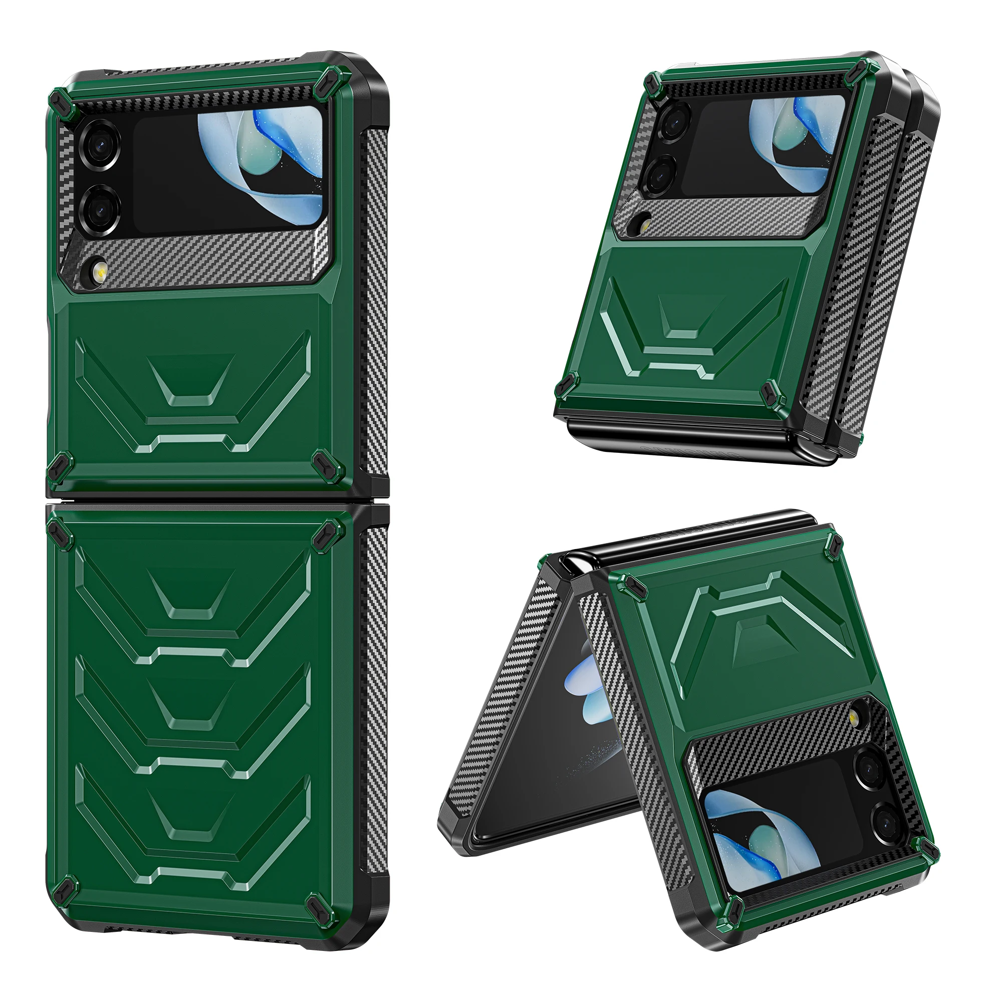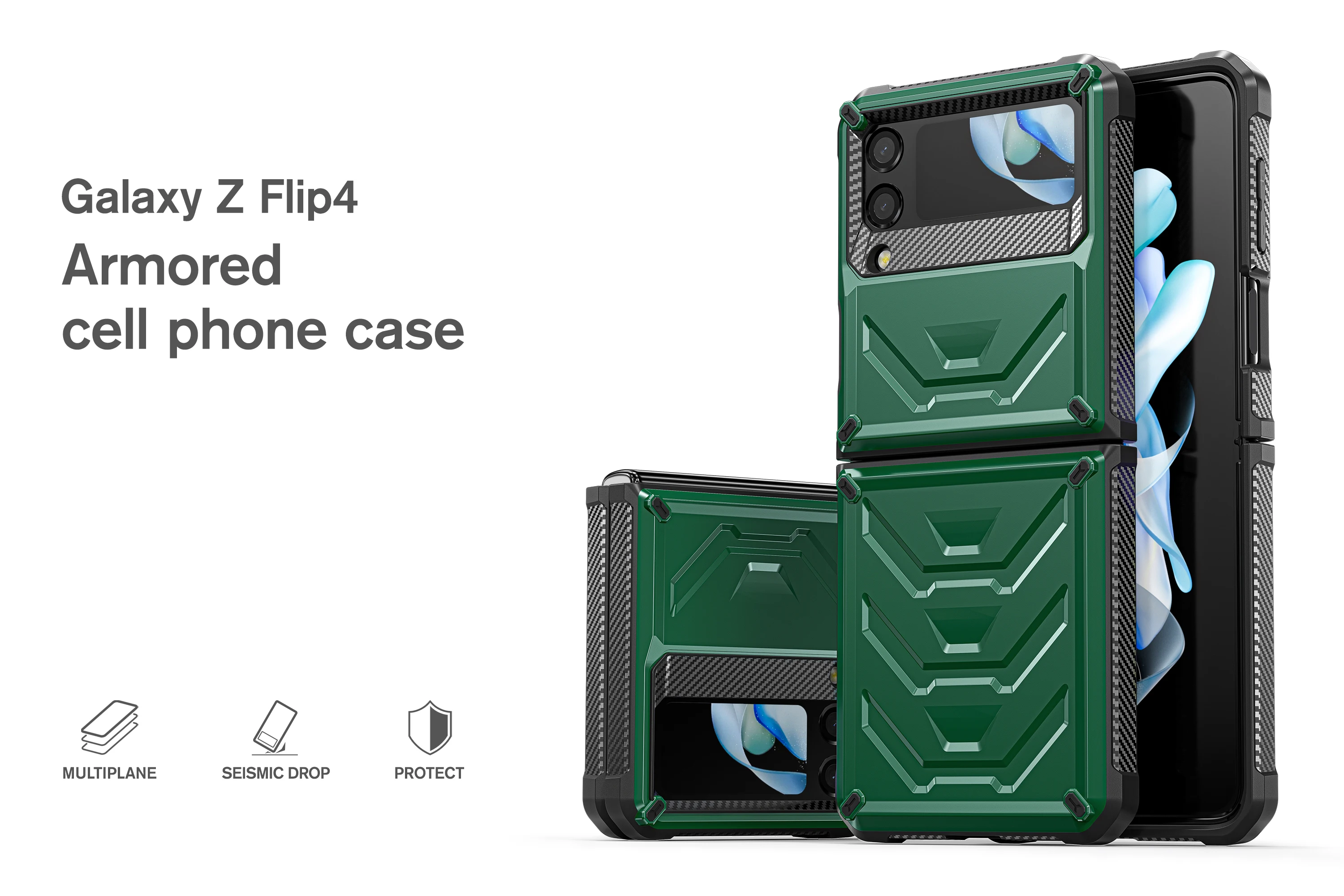 Galaxy Z Flip 4 SM F721 Luxury 6.7 Inch TPU 5G Case Cover PC Screen Protector Shockproof Black Mobile Phone