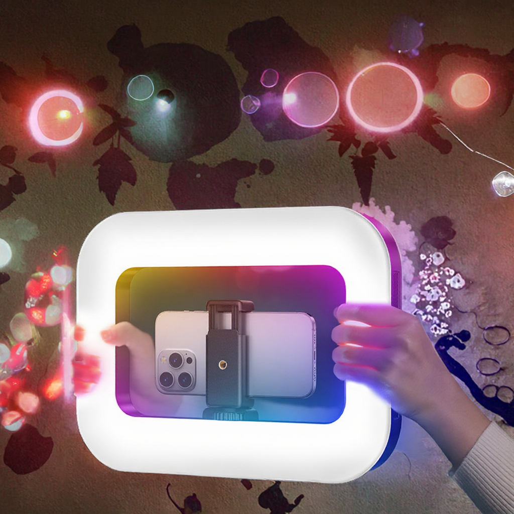 Enhance your smartphone vlogging setup with this handheld RGB LED ring video light, designed for outdoor use. It features adjustable RGB lighting to create the perfect ambiance for every scene. The included stabilizer bracket and tripod ensure steady, professional-quality footage while offering versatile shooting angles. Lightweight and portable, this kit is ideal for content creators seeking reliable lighting and stability on the go.