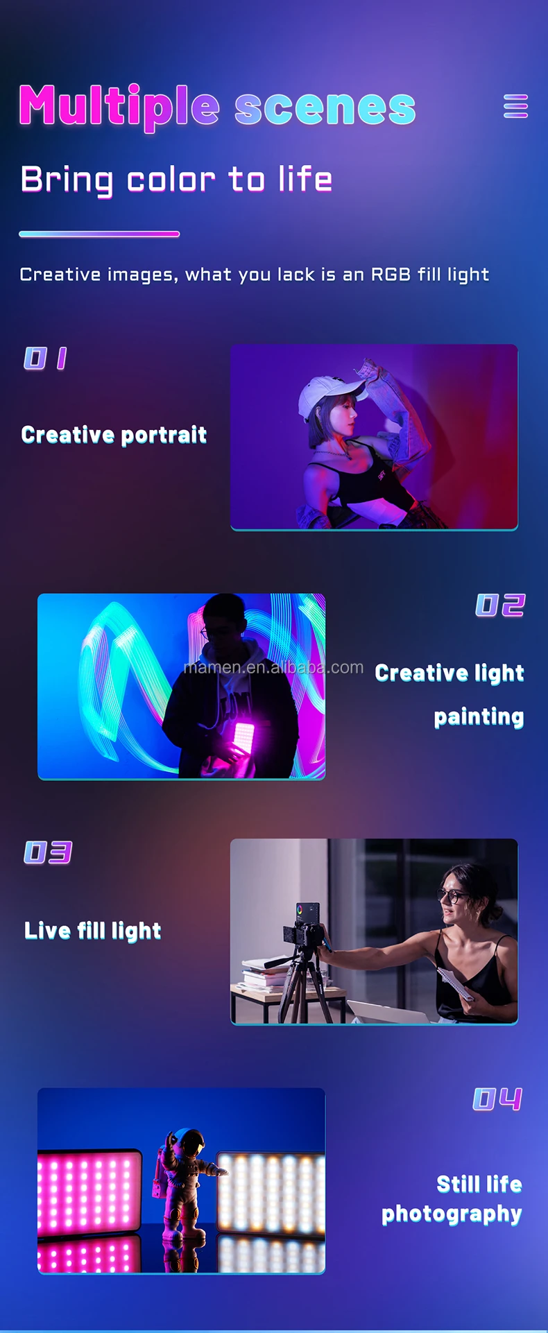 This professional photographic lighting panel offers high-quality fill light with a 95CRI rating, ensuring accurate and vibrant color reproduction in your photos and videos. Featuring adjustable RGB lighting, it provides versatile illumination that can be customized for various shooting scenarios. Ideal for content creators and photographers who demand reliable, top-tier lighting to enhance their work with clear, true-to-life visuals. Its popularity on TikTok reflects its effectiveness and user-friendly design.