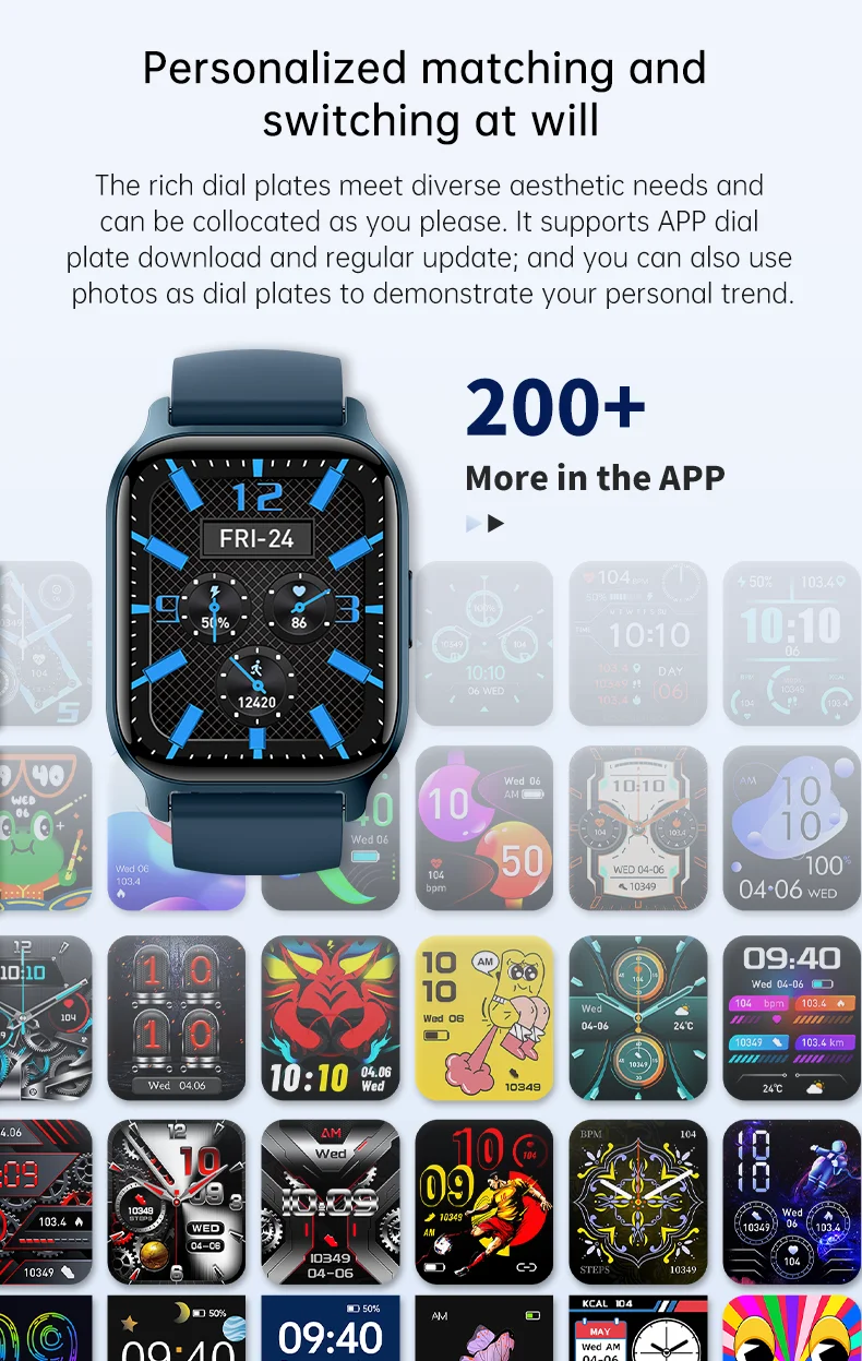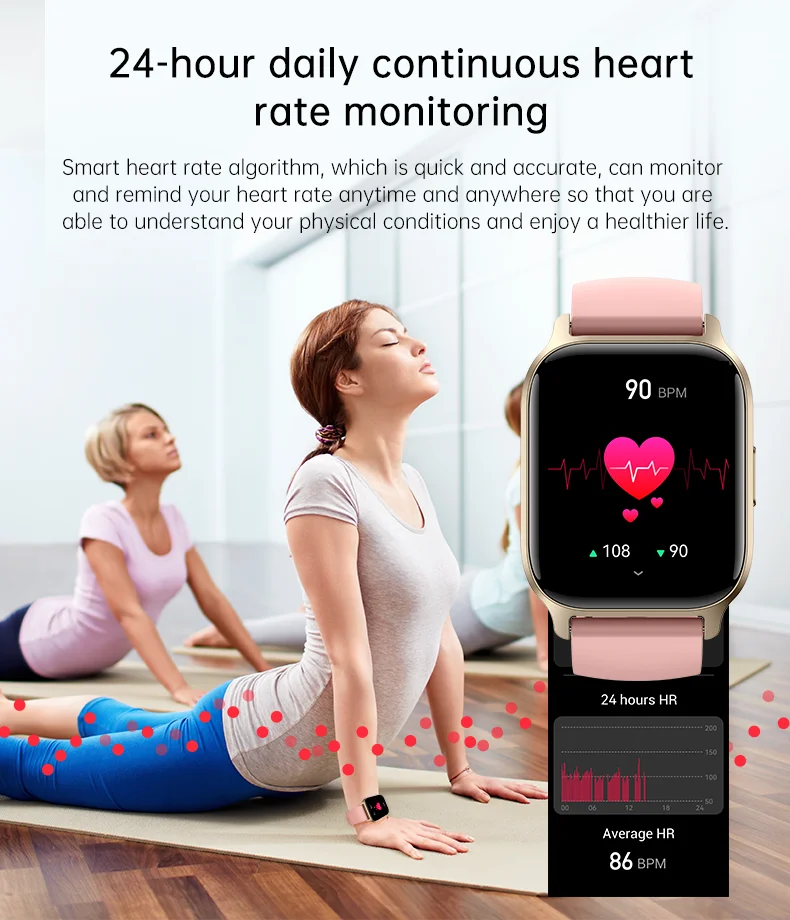 Heart rate and sleep monitor, blood oxygen measuring, pedometer and calories, multiple sport modes, body temperature, women health