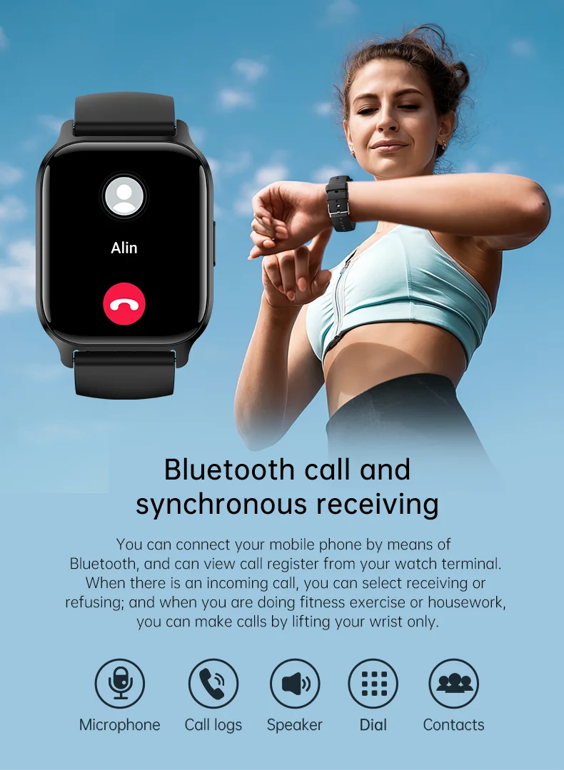 function: Calendar,Alarm Clock,Sleep Tracker,Call Reminder,Answer Call,Heart Rate Tracker,Payment