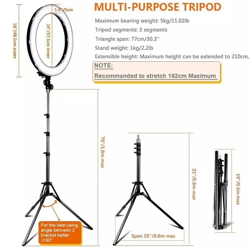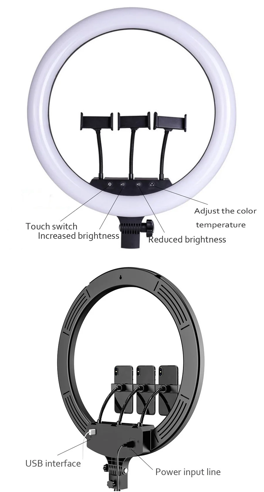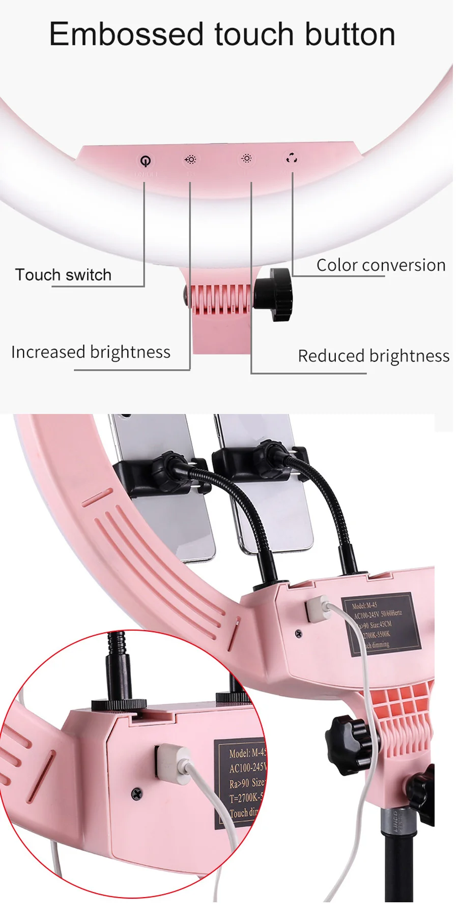 LED Ring Light 18 Inch Ringlight Photography Ring Lamp Makeup LED with Stand Hot Shoe for Camera and phone