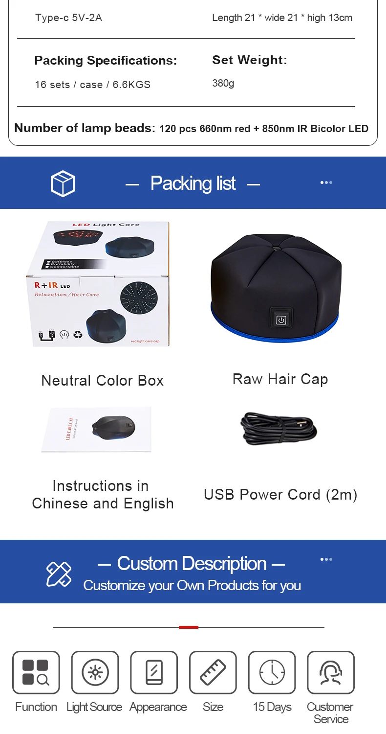 The above parameters can be customized!(Appearance color, LED quantity, logo, packaging box, instruction manual, etc.)