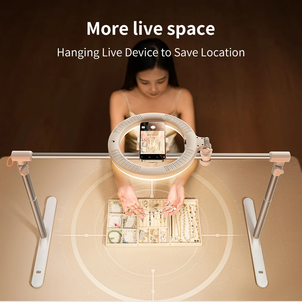 Jopree F5 Live Makeup Flexible Mmulti-Functional Selfie Led Ring Light With Phone Holder Overhead Bracket Set With Soft Light White(A-F5-ZMB) F5 Tidesmit