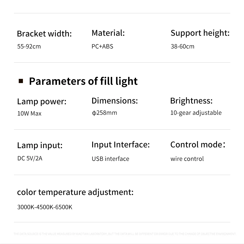 Support stand + fill light + phone clip + knob ball + hex wrench + foot stand + screw bag + product manual