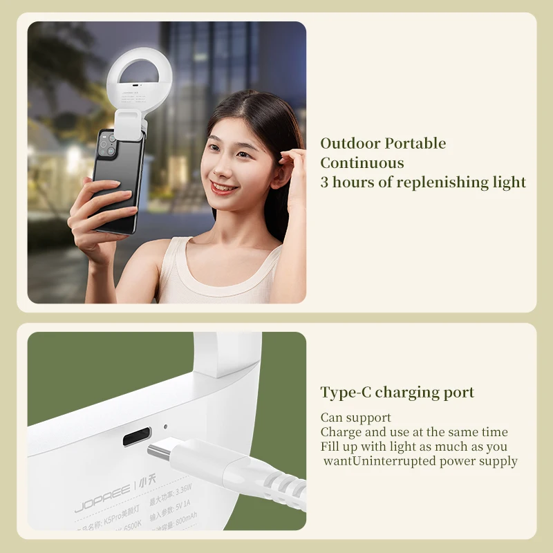 Jopree K5 Pro LED Rechargeable Selfie 5 Lighting Mode Phone Ring Light Mini Portable Clip on Fill Lights