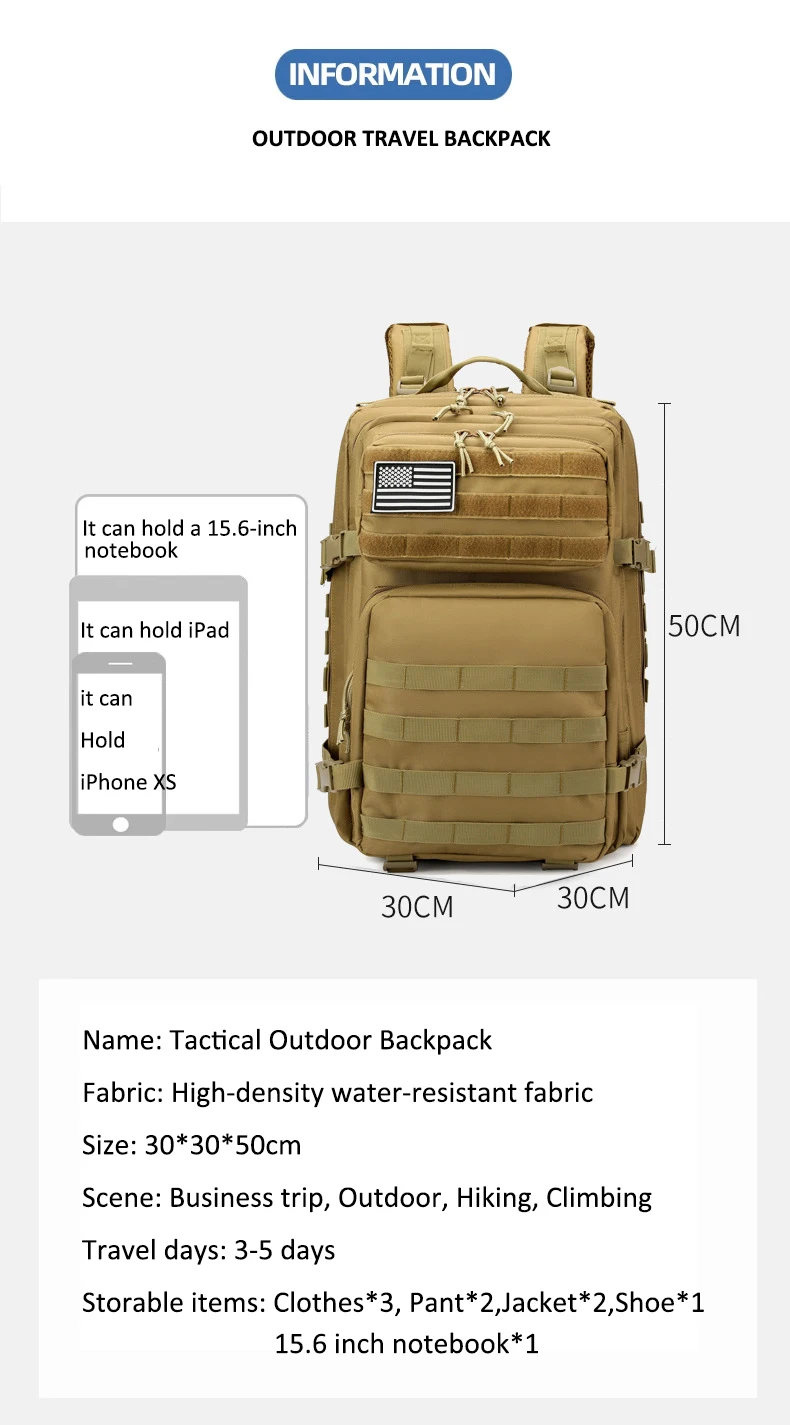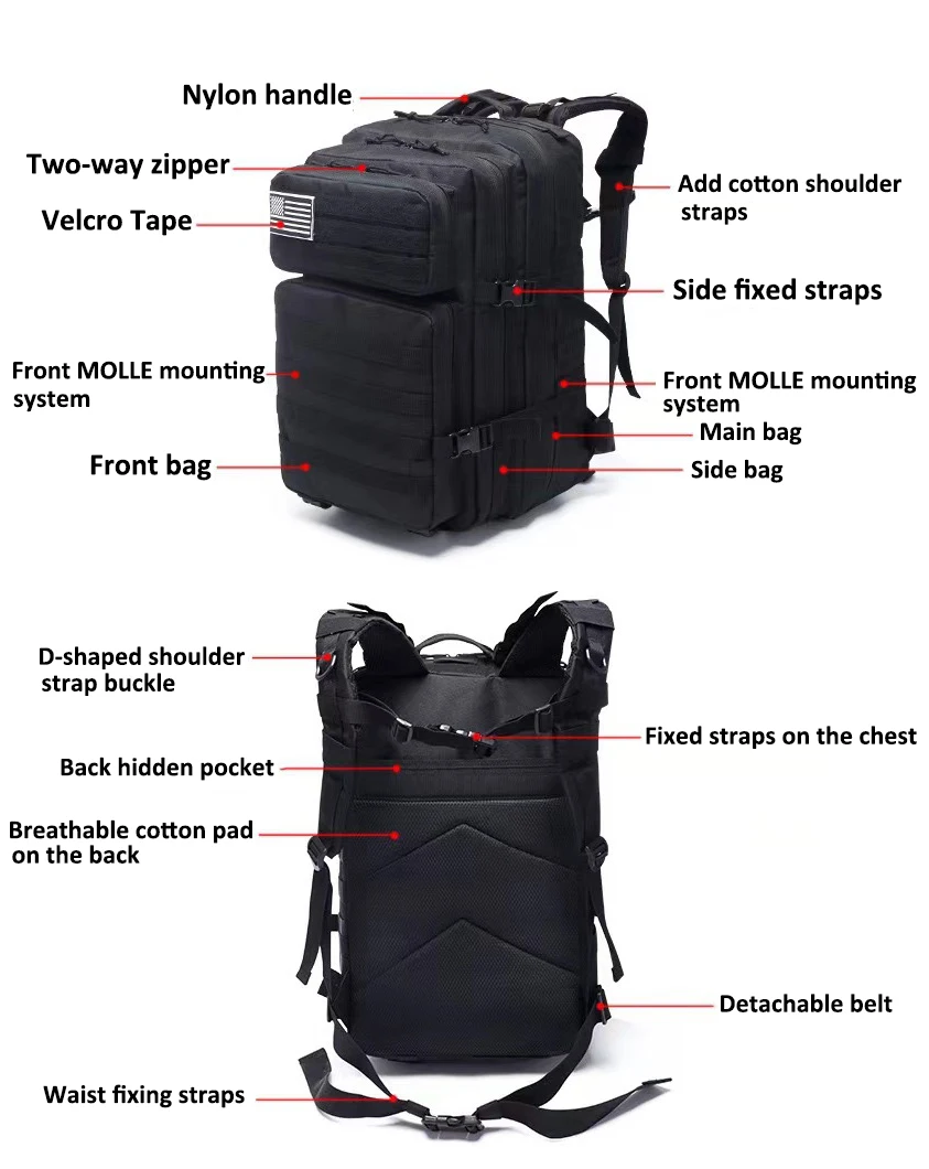 Large Capacity 45L Liters Oxford Waterproof Tactic Fitness Backpack Premium Molle Tactical Gym Trekking Backpack