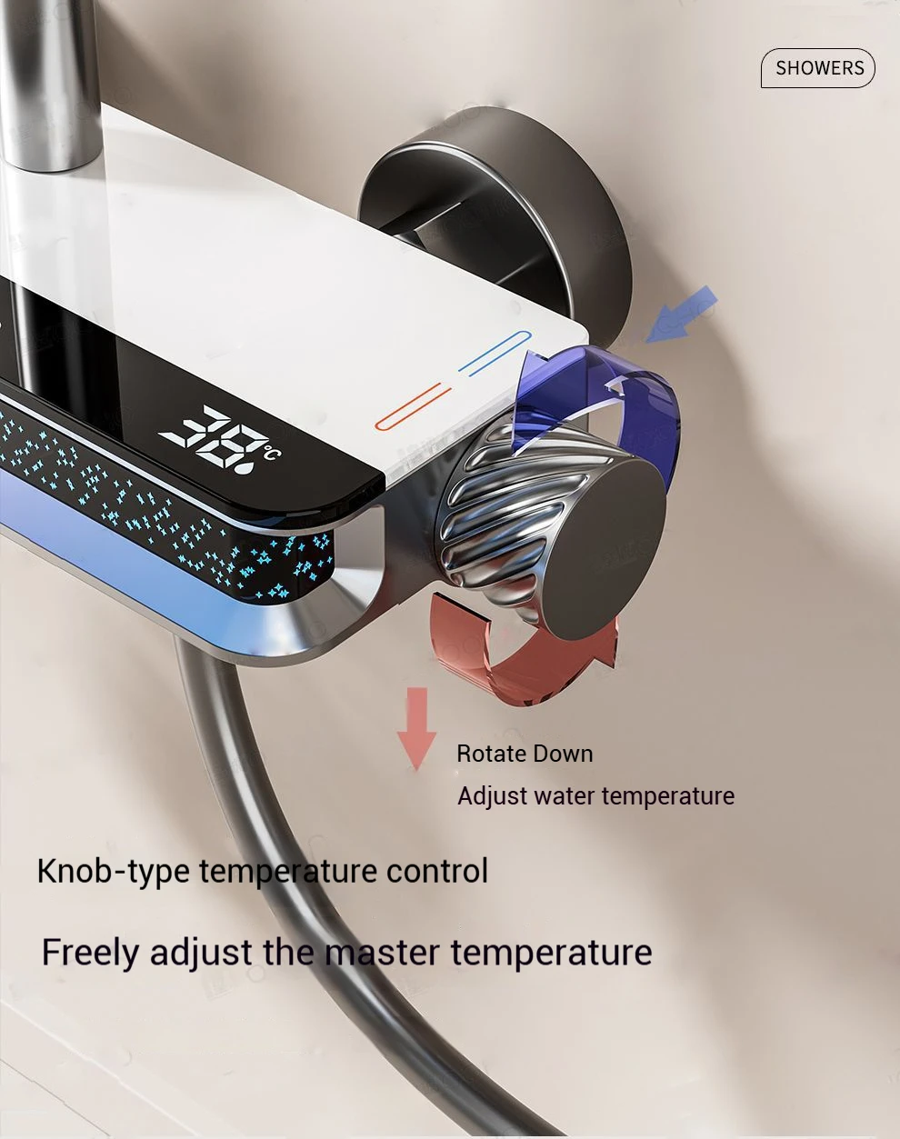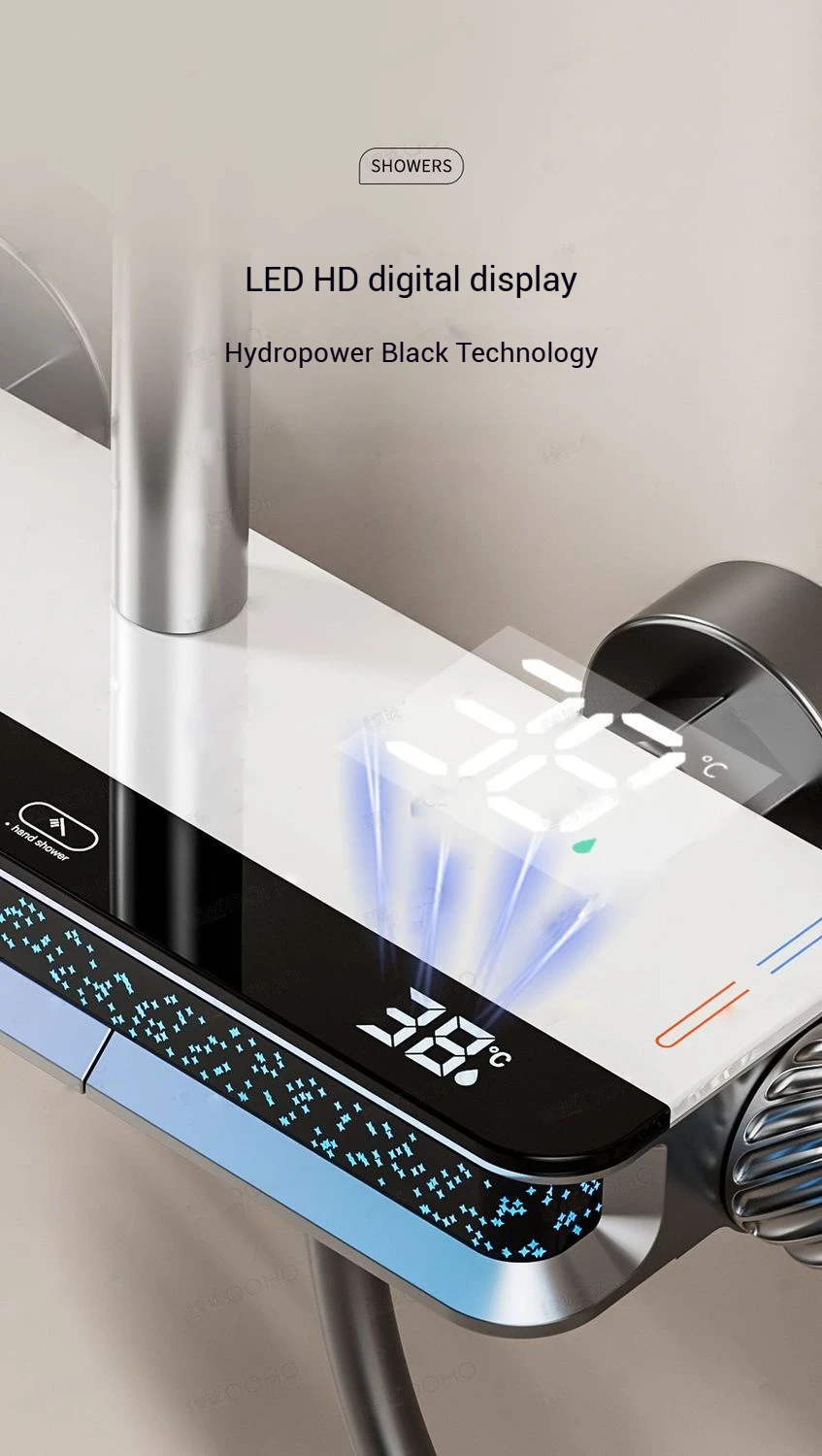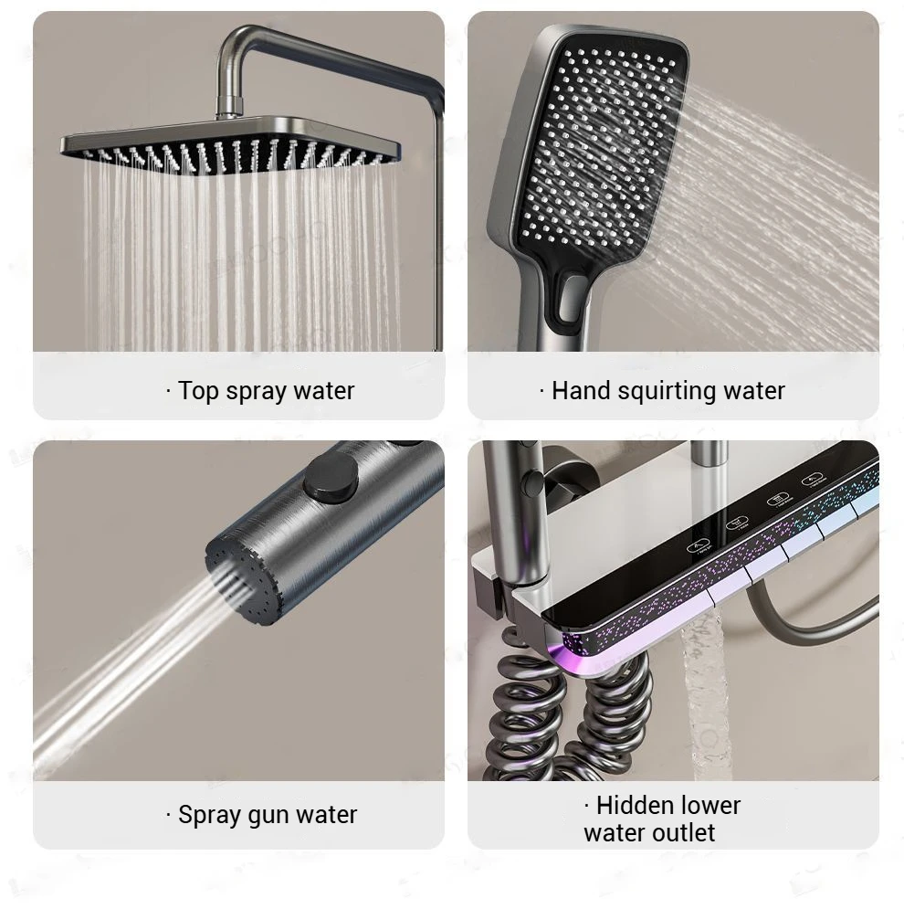 LED Digital Display Shower Set with Starry Light Effect, Smart Temperature Indicator, Water Saving Shower Set ForModern Bathroom