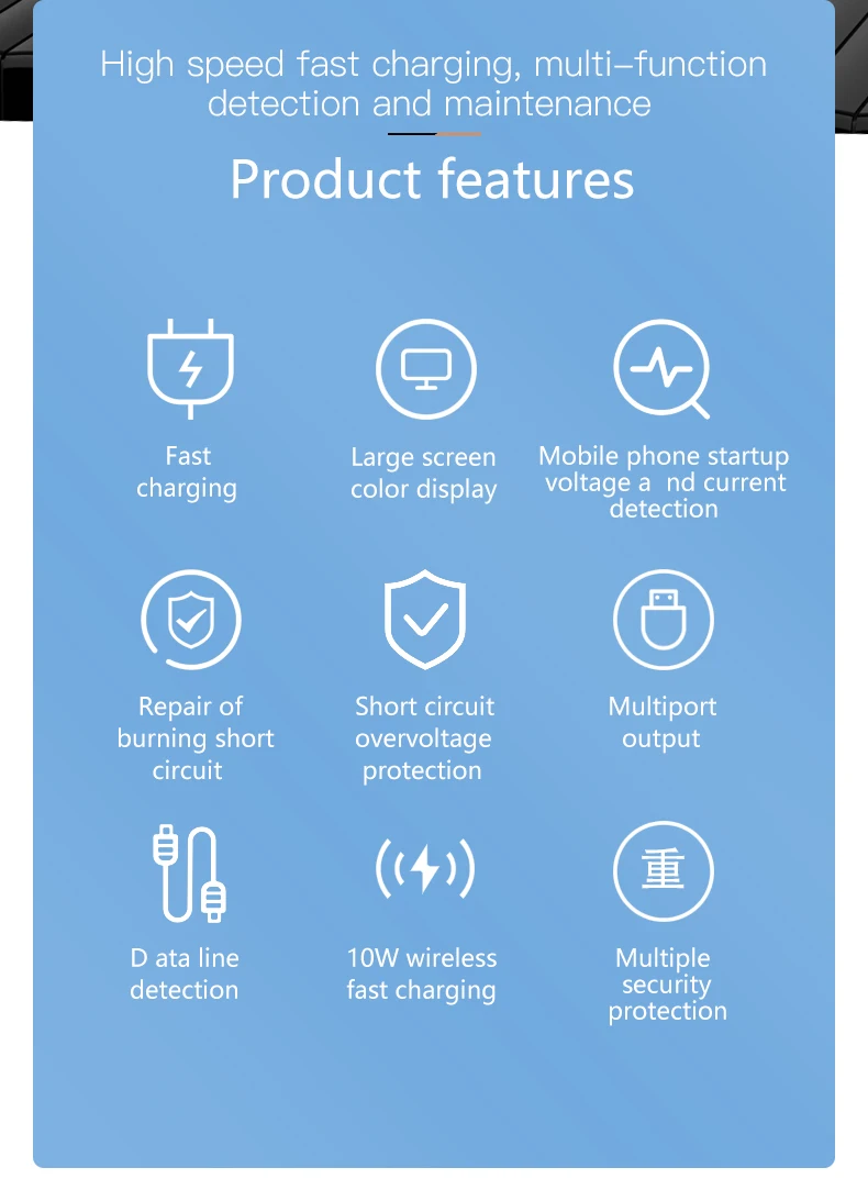7. Suitable for 100-240V, supports multiple mobile phones charging at the same time.