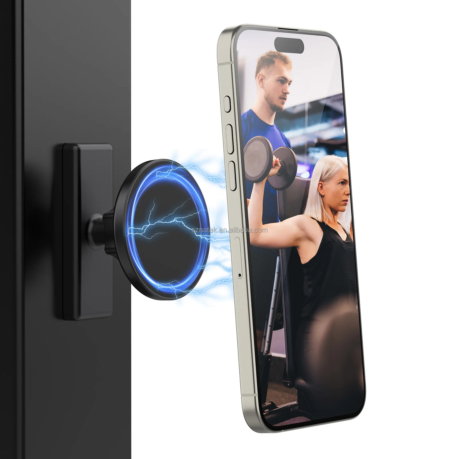* 【Designed for Magsafe Precisely】This gym phone holder accessories is specially designed to seamlessly fit for Magsafe iPhone 15 14 13 12 Pro Max Mini & Magsafe Cases. Without the need of additional sticking magnet plates, just get close and automatically snap your iPhone to the gym magnetic phone mount. The best gift for someone work out in gym (Note: If you are using a non-Magsafe phone or case, you have to stick the included adhesive metal ring on the back of other boxes or phone to make it
