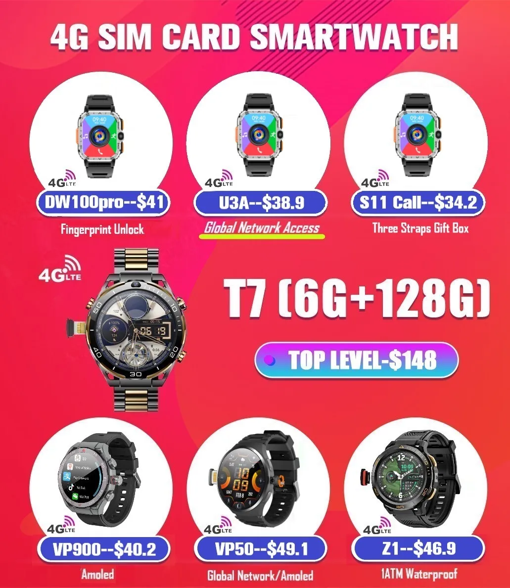 A Wristphone with 4G full Netcom, 8541E quad-core 1.4GHz processor, 2MP camera that rotate 180 degrees front and back, high-tech