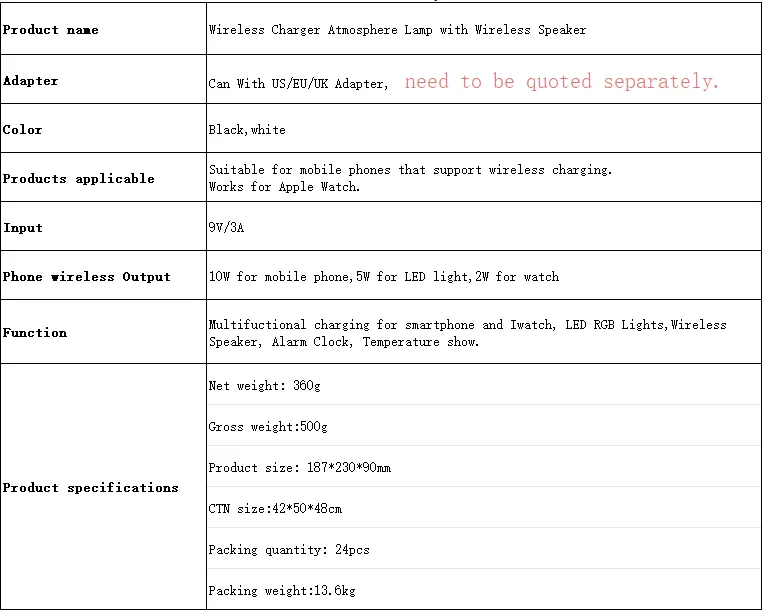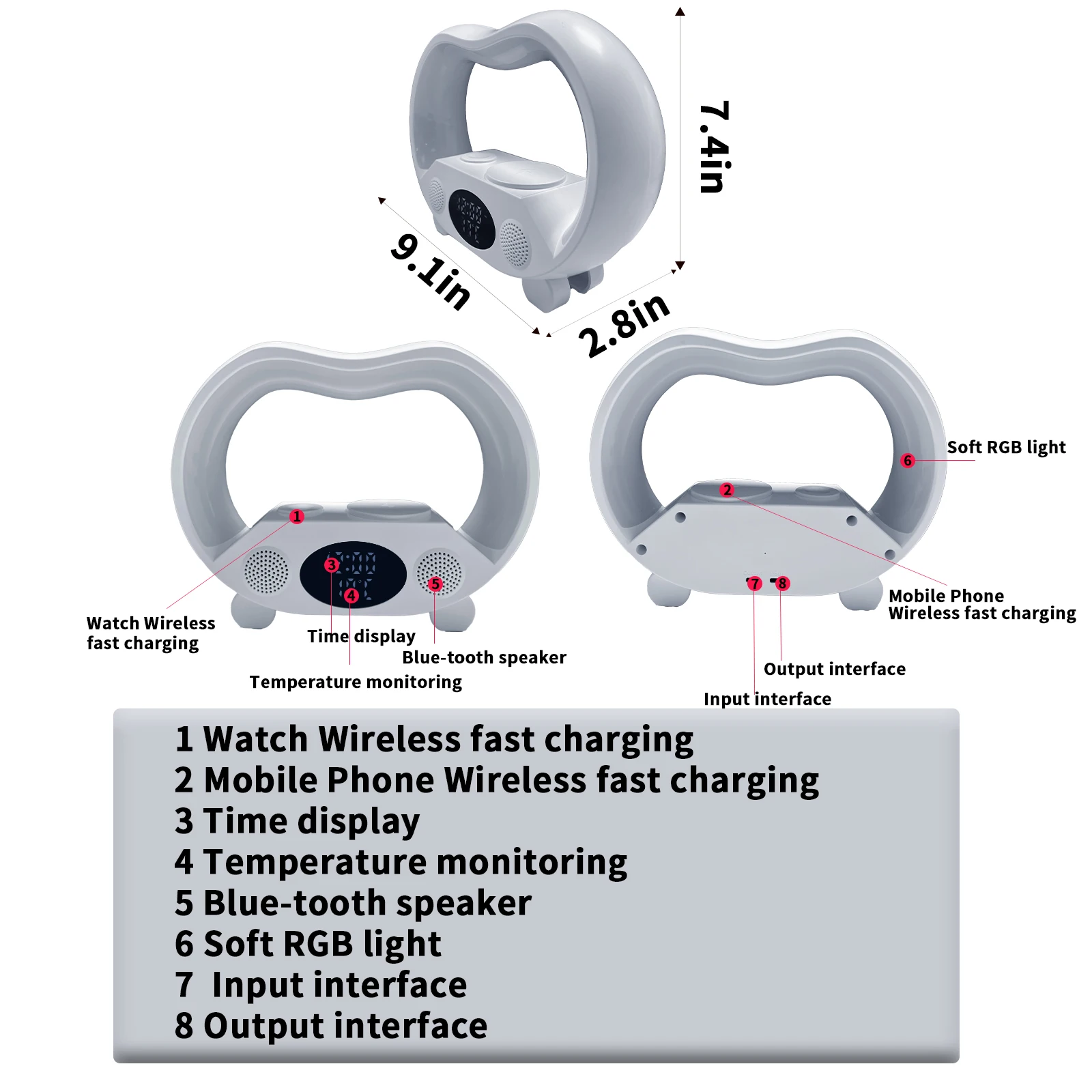 Multifunctional G Shape Wireless Charger Led Lamp Alarm Clock RGB Night Light 15W Phone Wireless Charger and Speaker Lamp