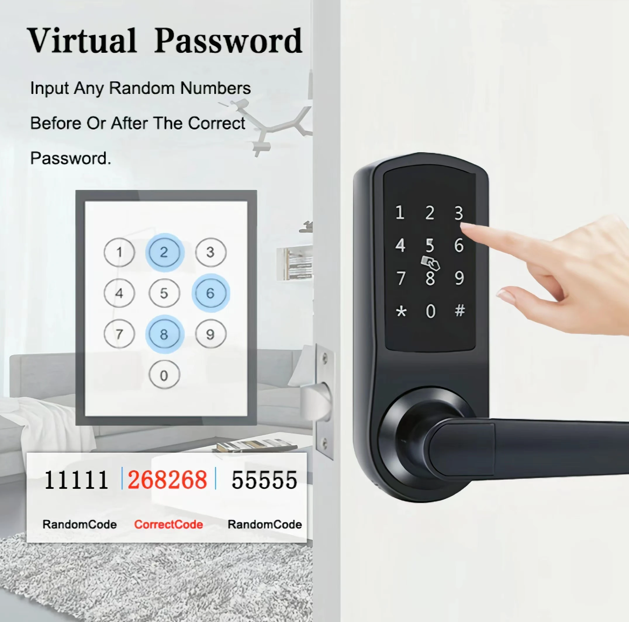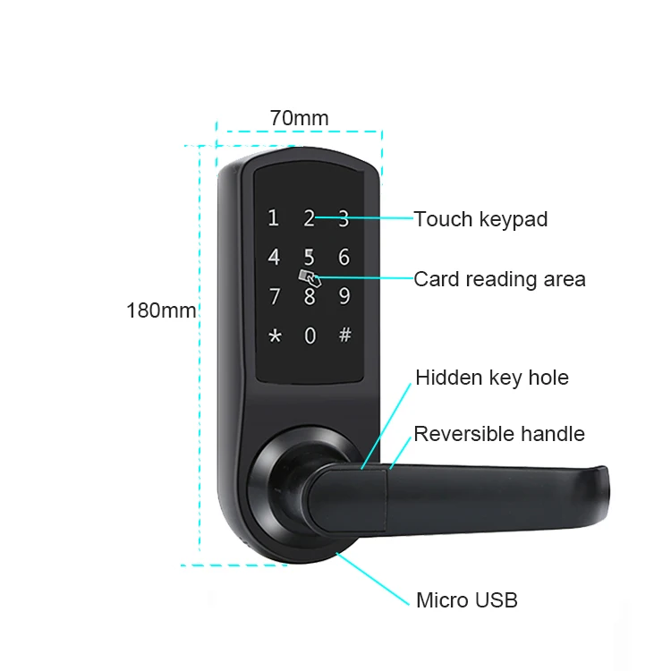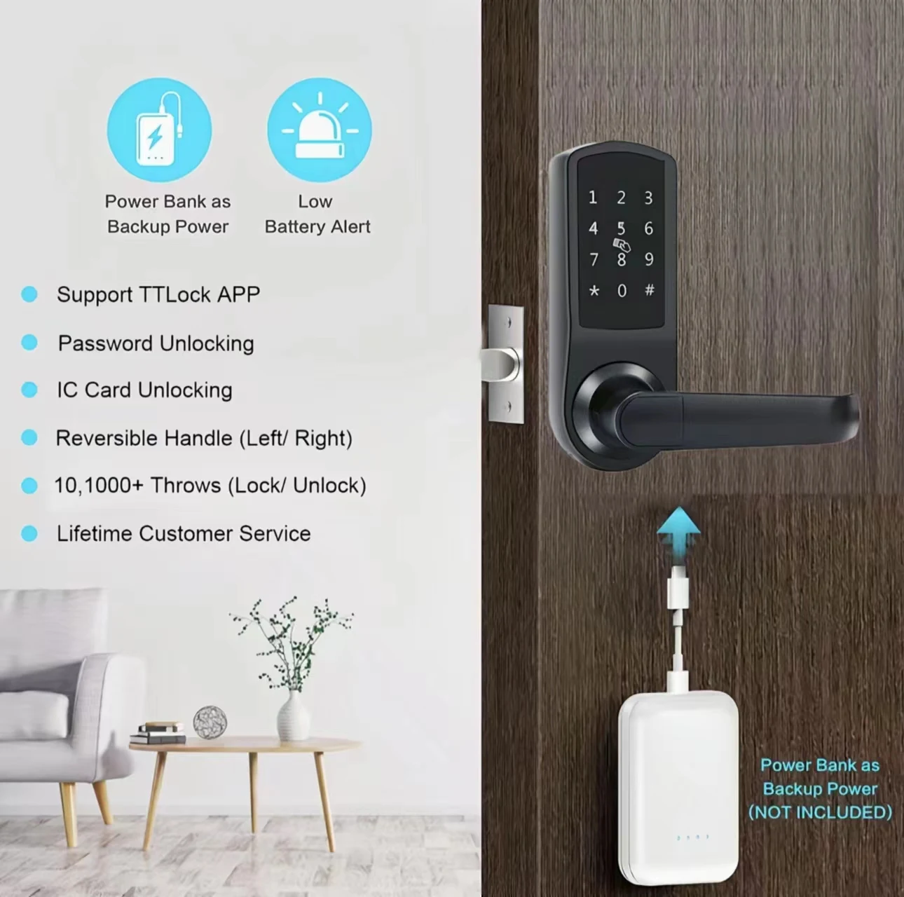 1- Multiple unlock mode: Password, Card, mechanical key, TTLOCK APP
