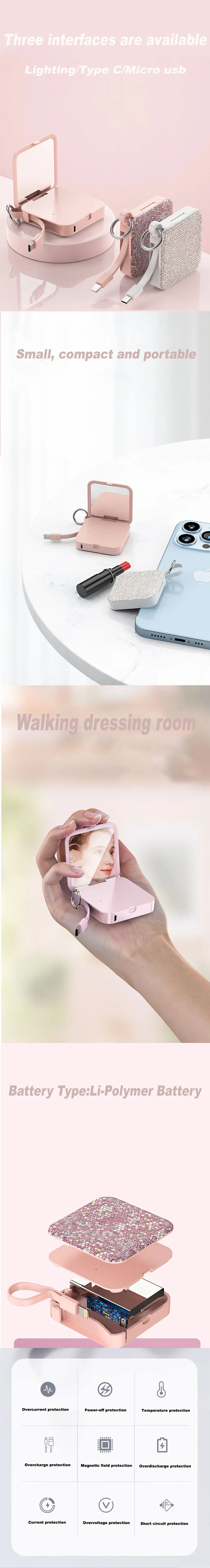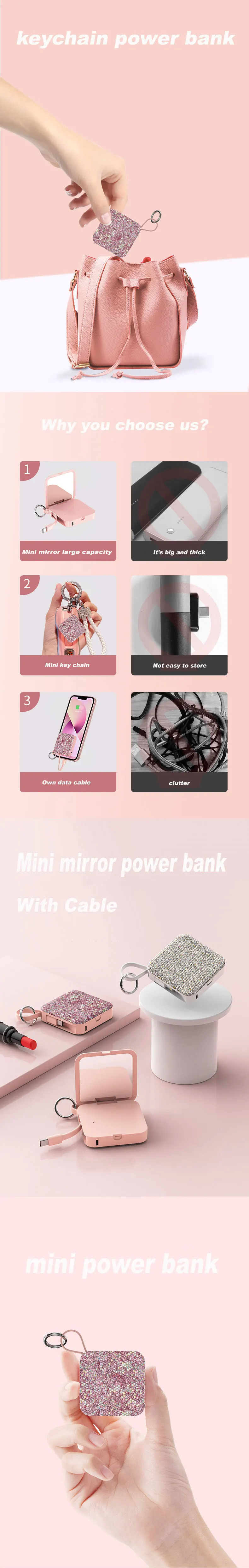 Mini Emergency Power Bank 3300Mah With Keychain and Mirror PowerBank 5000Mah