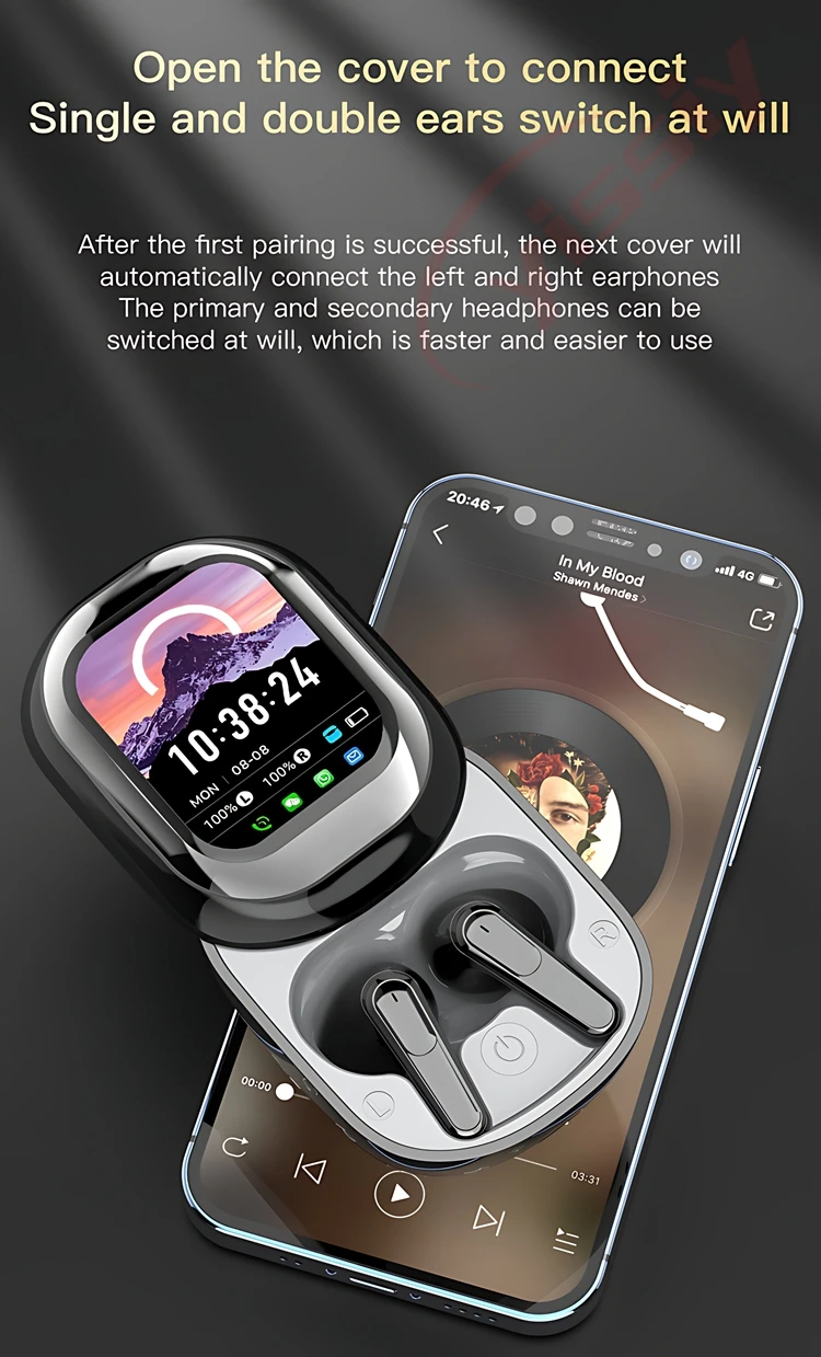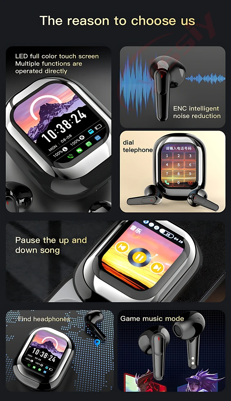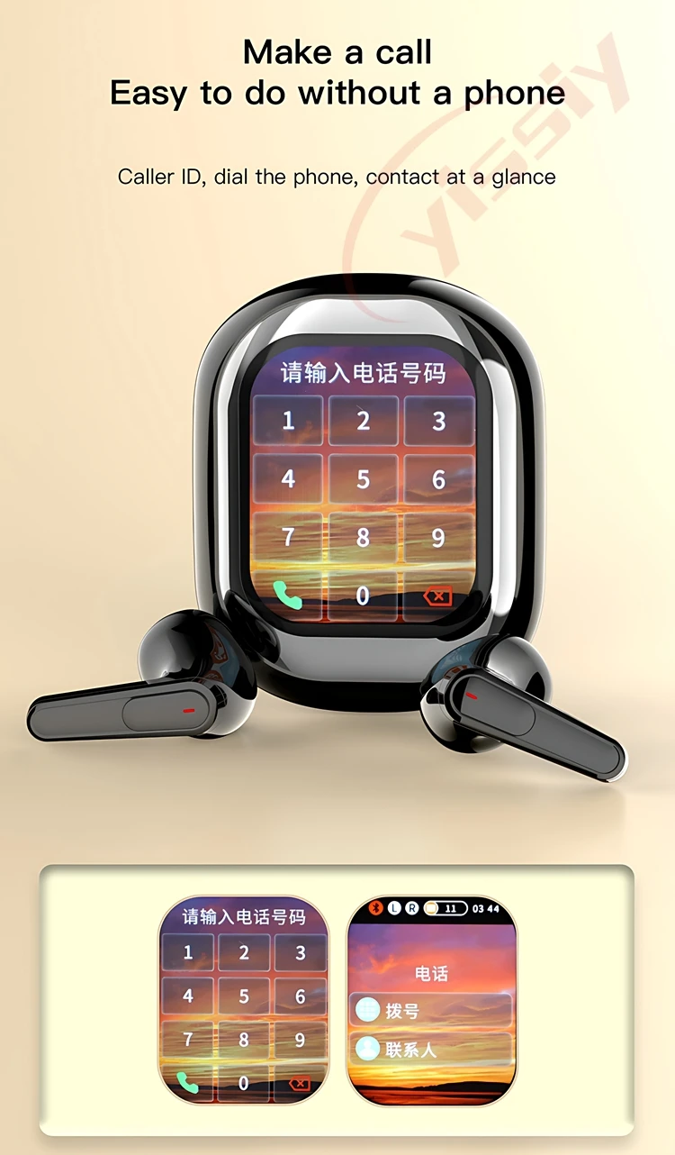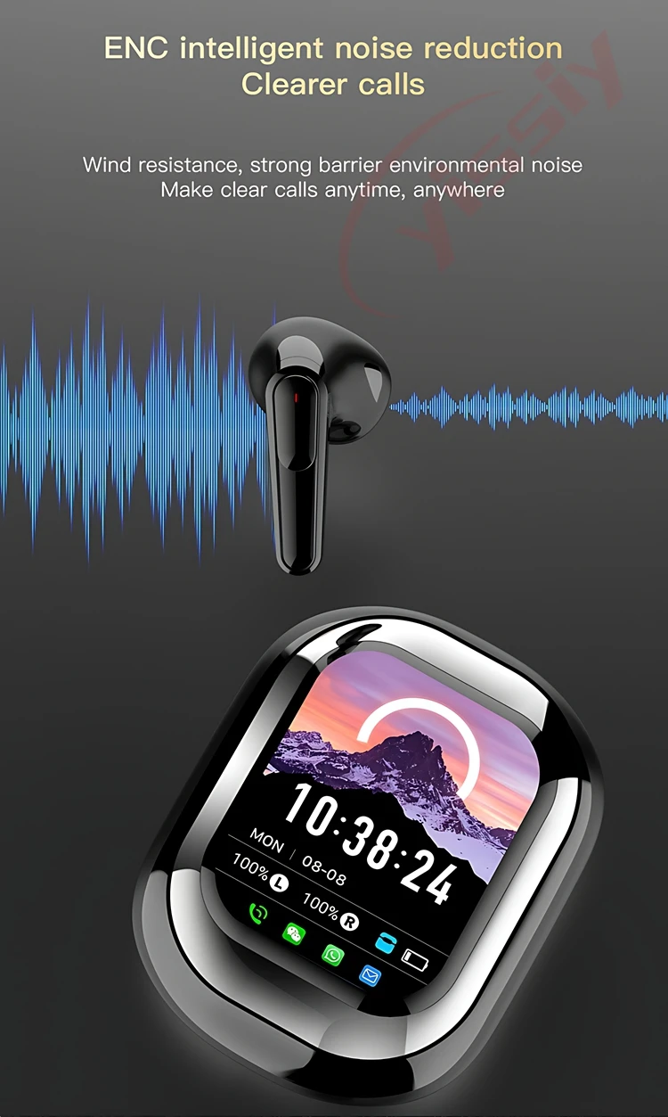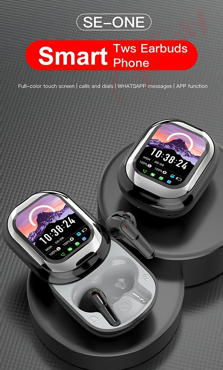 New SE-ONE ENC Tws Earbuds HD LCD Touch Screen True Wireless Sports Earphones & Headphones with Message Receiving and Dial