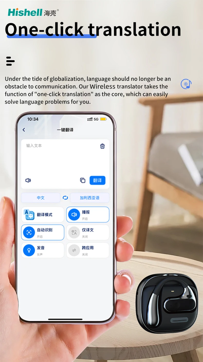 Portable Mini Translator Over 100 Kinds of Languages Mobile Phone APP Translate Real Time Smart Voice Translation Device