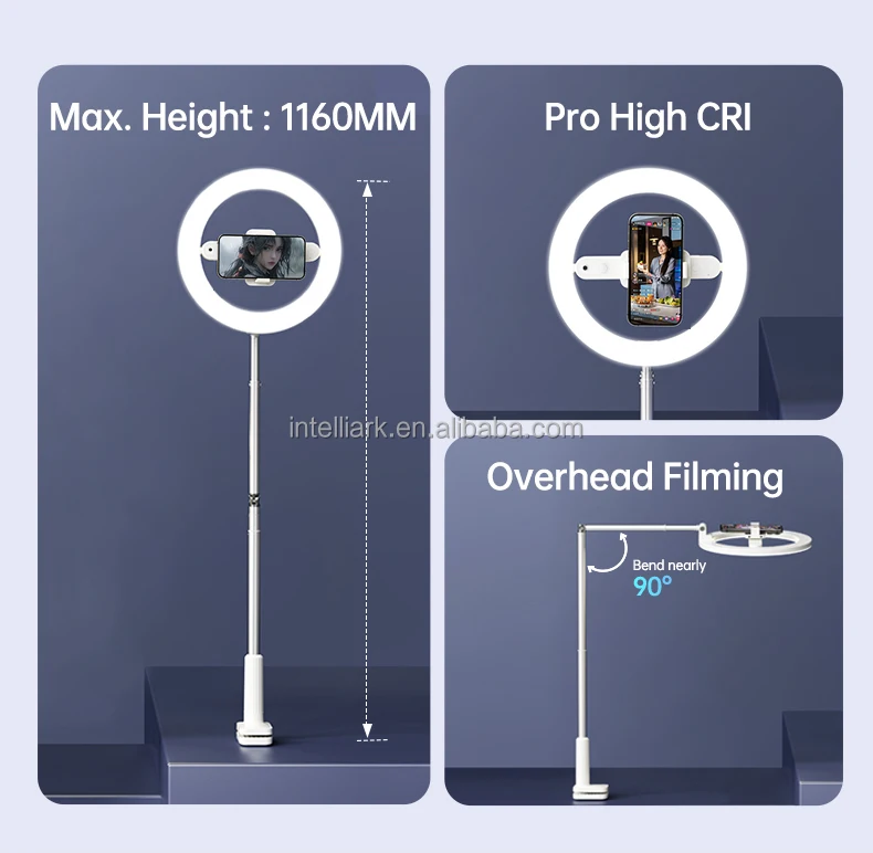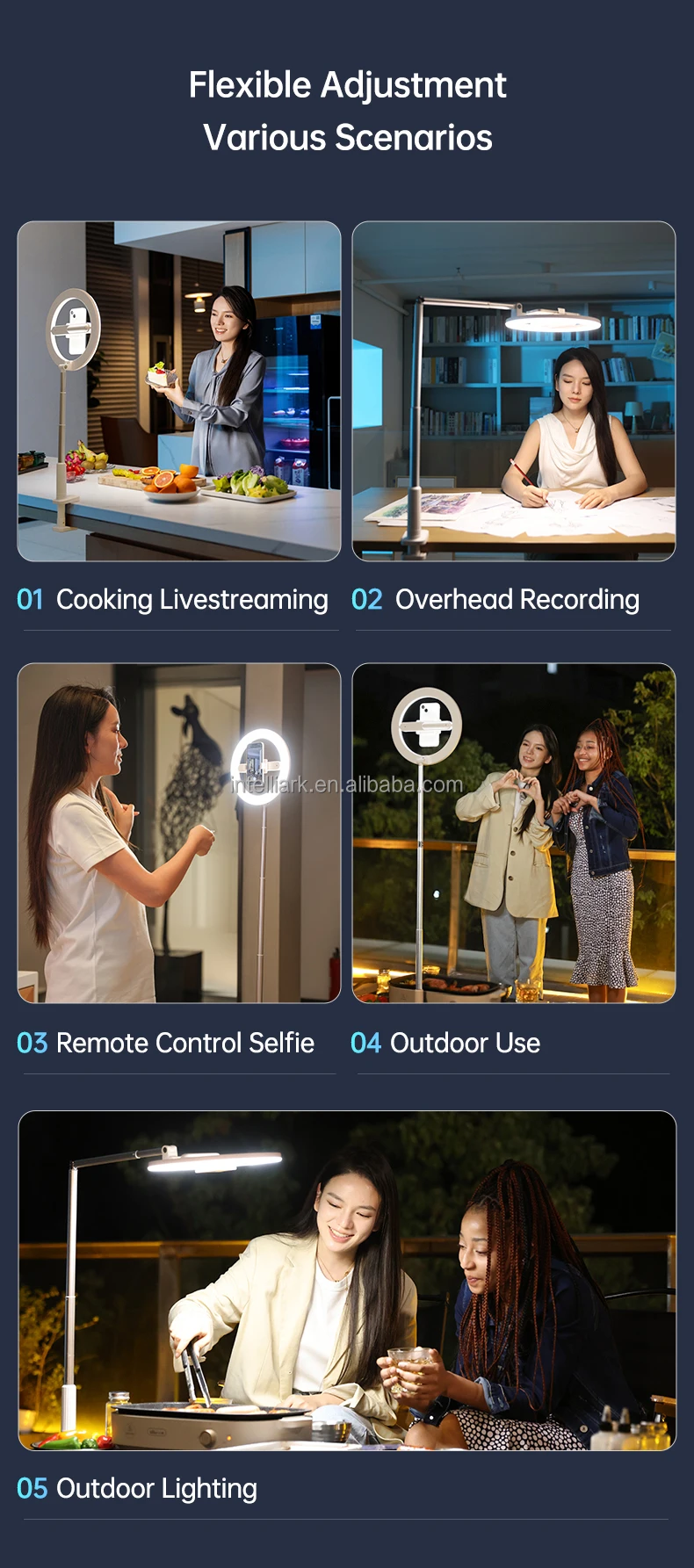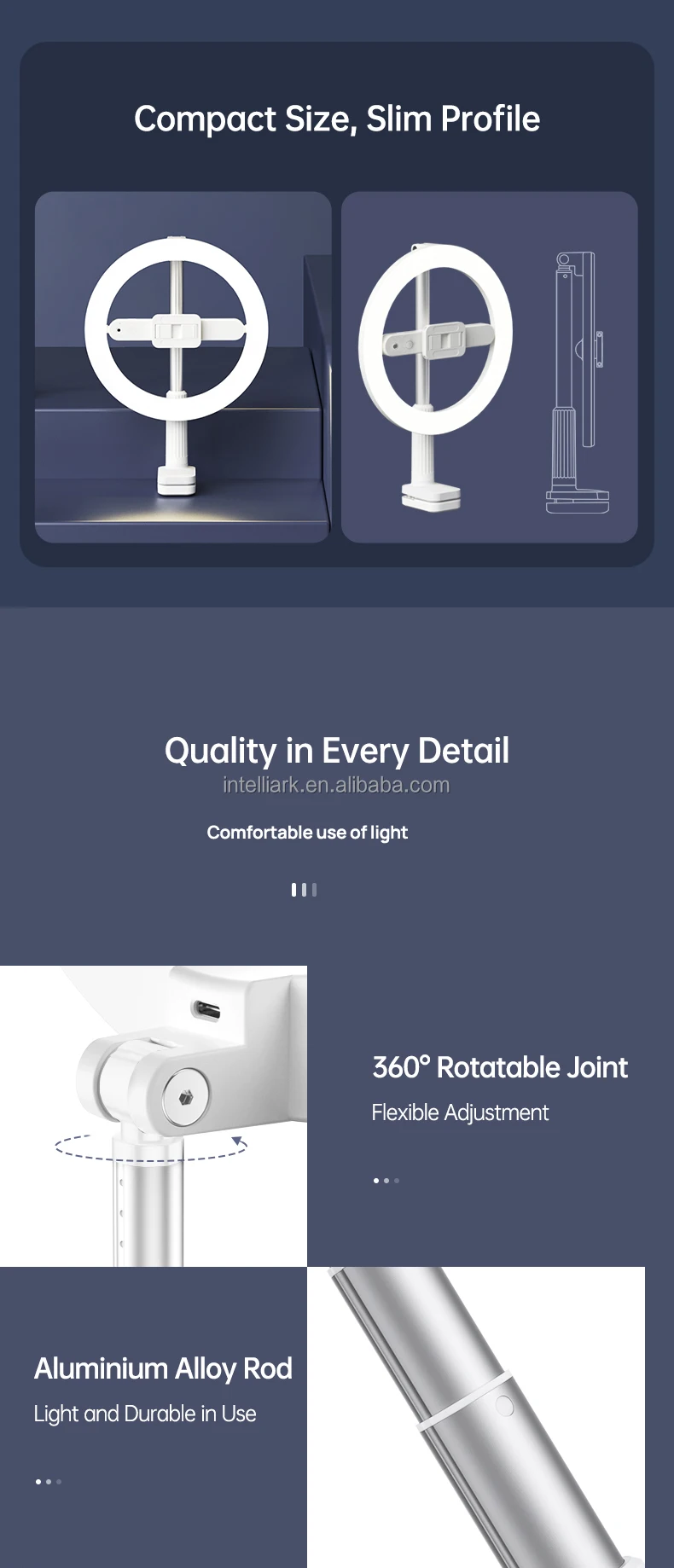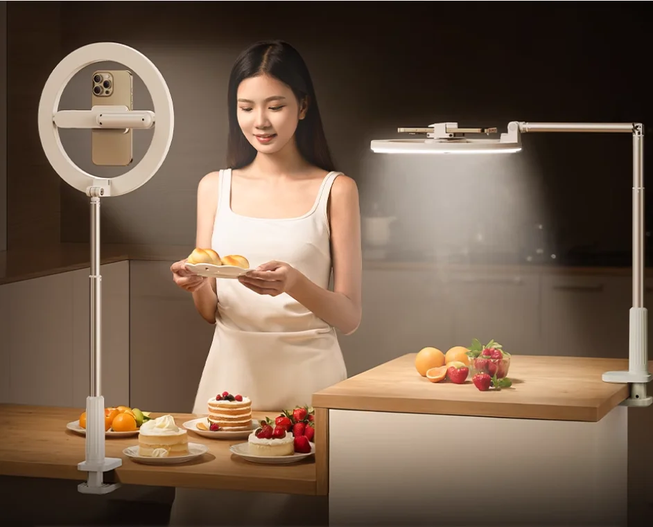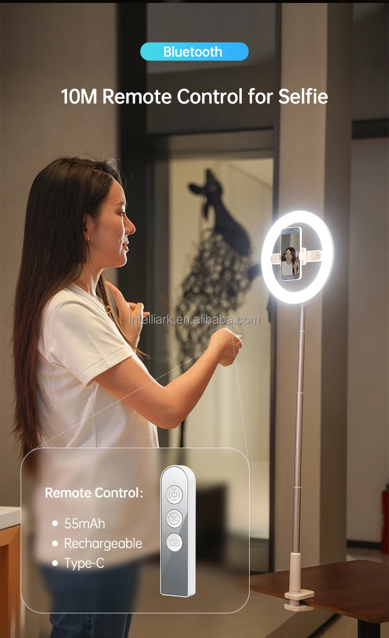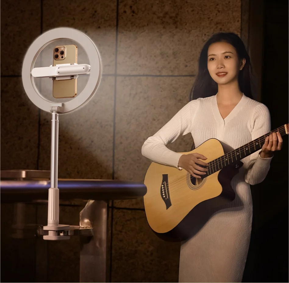 【✔9 cm width clamp 】Compared to the most clip on phone stand on market , this phone stand with ring light is suitable for desktop , tabletop ect.