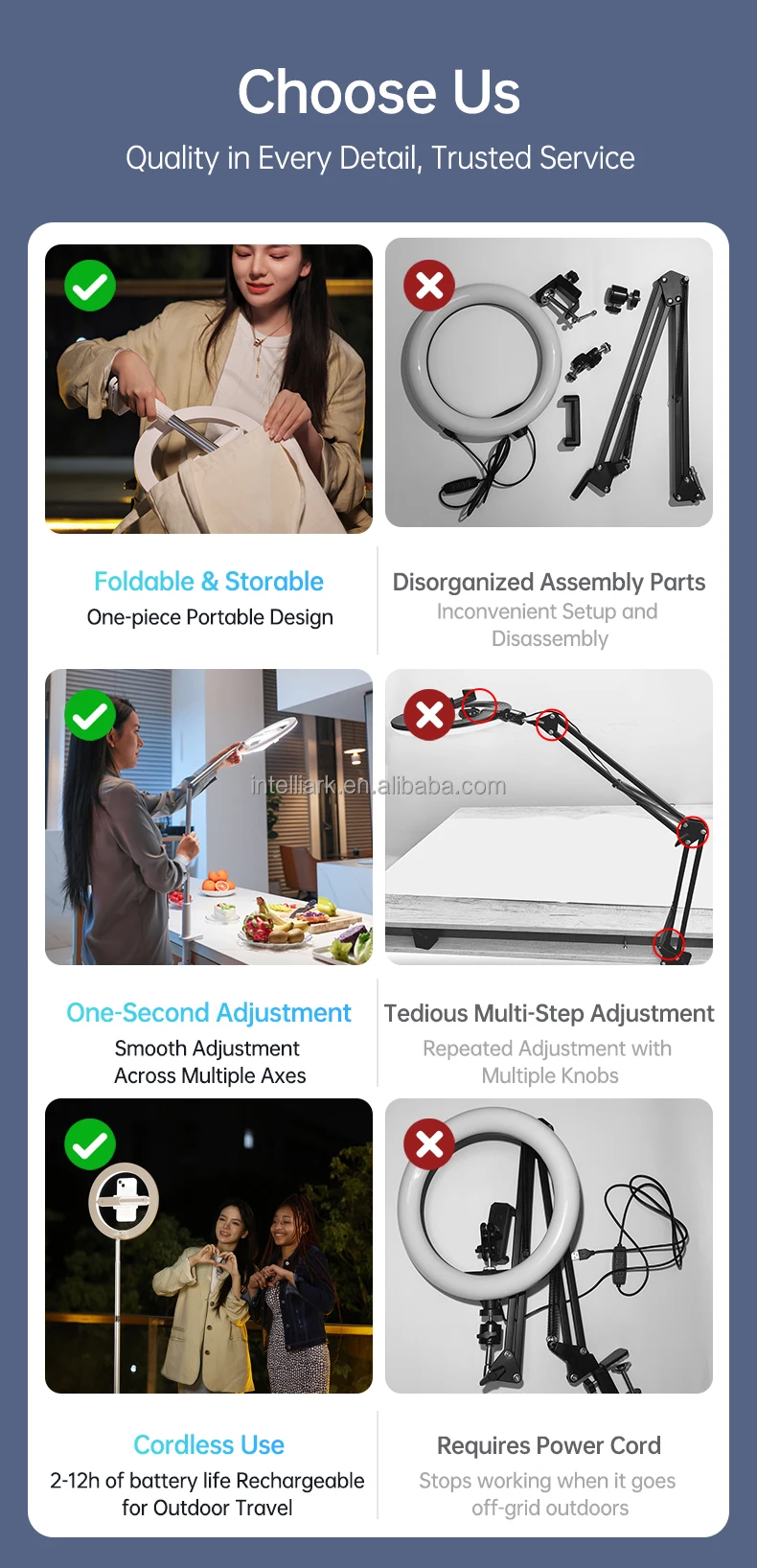 【✔No Installation】For our stand with ring light , you don't need to install that , just open it for usage.