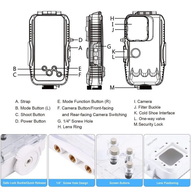 Takenoken Mobile Phone Accessories 40m Photo Video Underwater Housing Cover Waterproof Diving Phone Case for iPhone 15 Series |