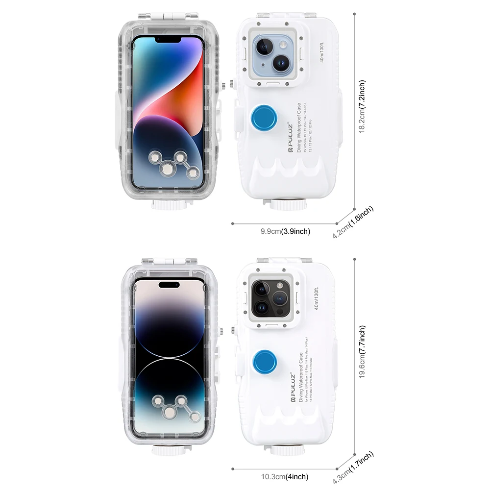PULUZ 40m Photo Video Underwater Housing Cover Waterproof PC Diving Phone Case for iPhone White Lanyard Mobile Phone Accessories