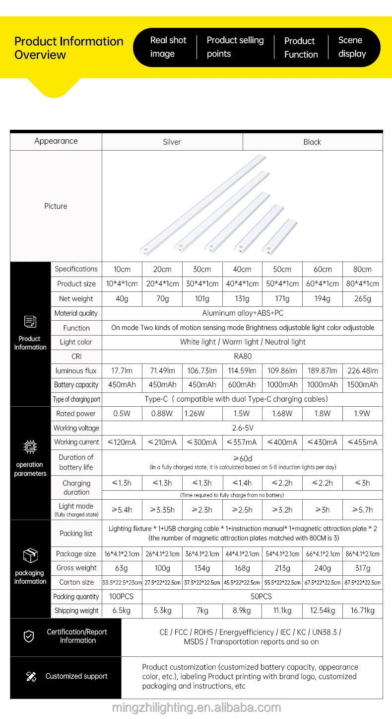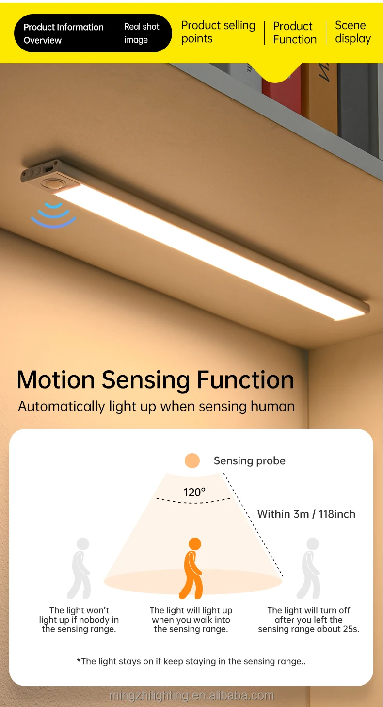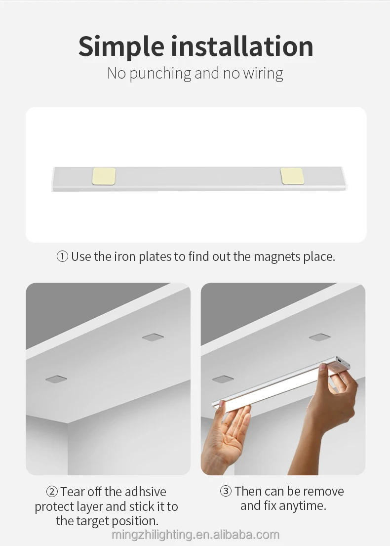 Smart Human Body Under Cabinet Infrared Wardrobe Rechargeable Night PIR Led Motion Sensor Light for Indoor Kitchen Closet Stairs