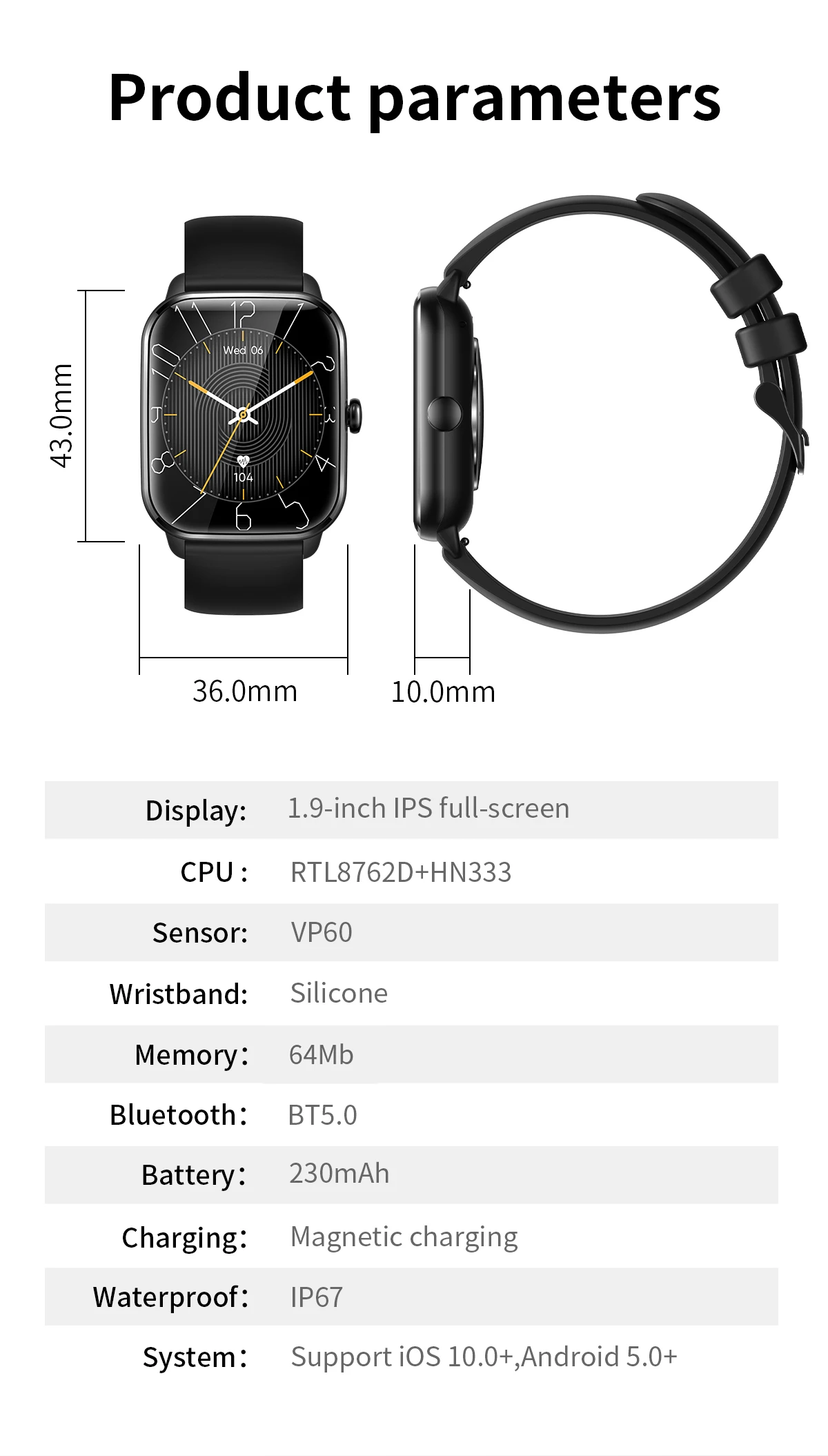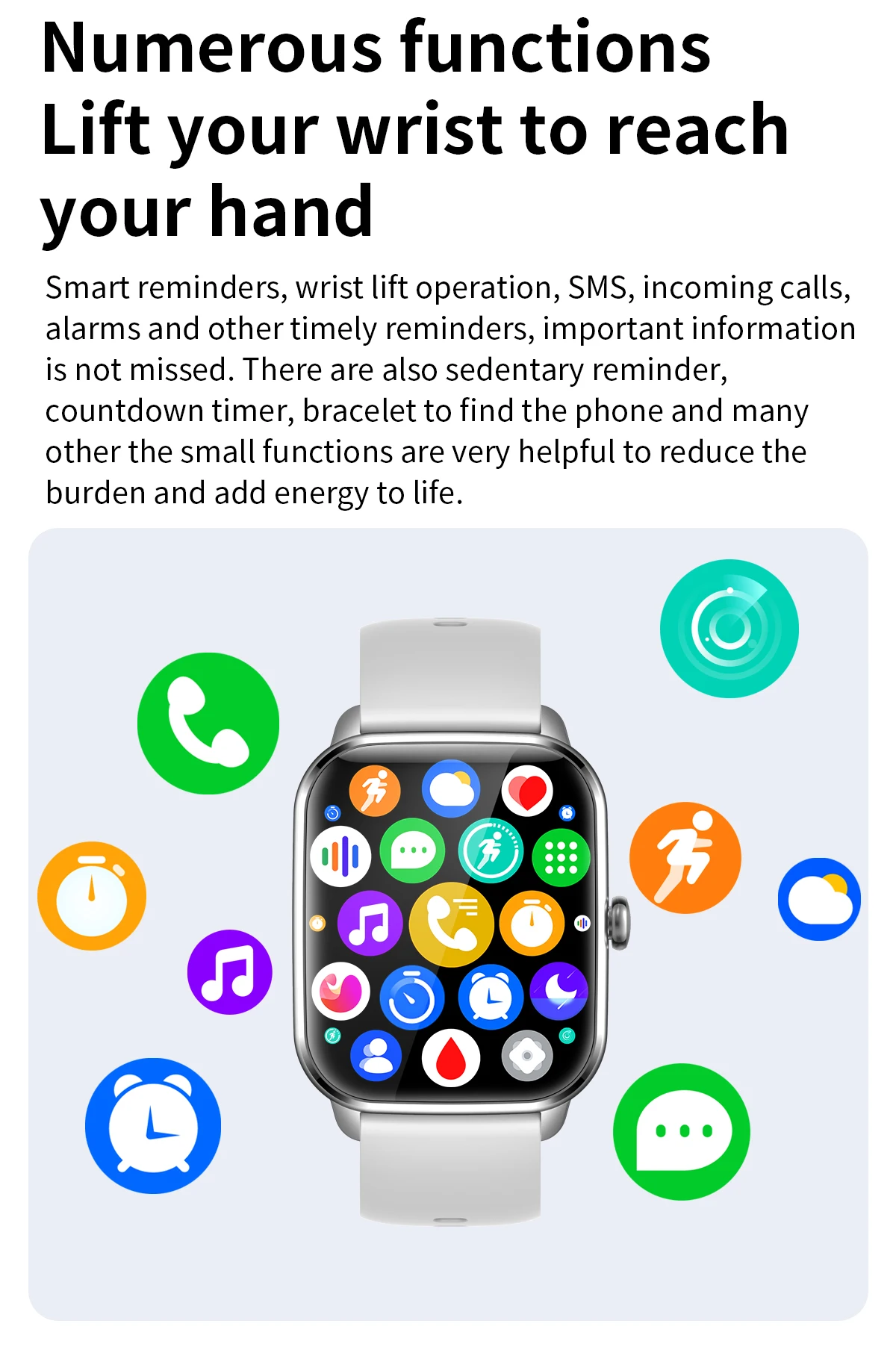Smart Watch 1.9inch Fitness Tracker Watch BT Call Smartwatch Continuous Heart Rate Monitoring Factory Directly PK C61 Smartwatch