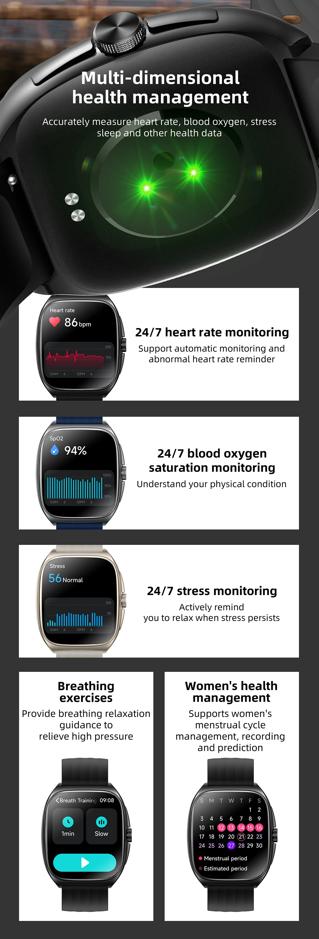 function: chronograph,COMPASS,Calendar,Alarm Clock,Power Reserve,Remote Control,Countdown,Noctilucent,Sleep Tracker,Fitness Tracker,Passometer,Call Reminder,Answer Call,Push Message,Mood Tracker,Message Reminder,Dial Call,Heart Rate Tracker,GPS Navigation,Activity Tracker,Social Media Notifications,Calorie Tracker,Accelerometer,Breath Monitor,Distance Tracker,EMAIL,Multisport Tracker,Music Player,Sedentary Reminder,Menstrual Management,AI voice assistant